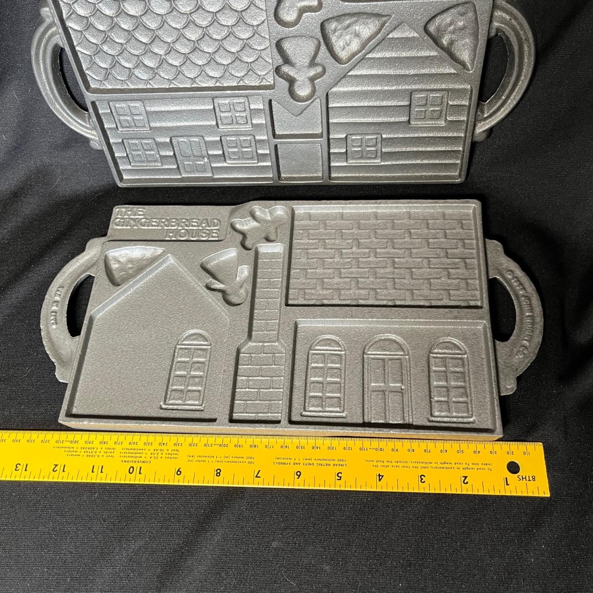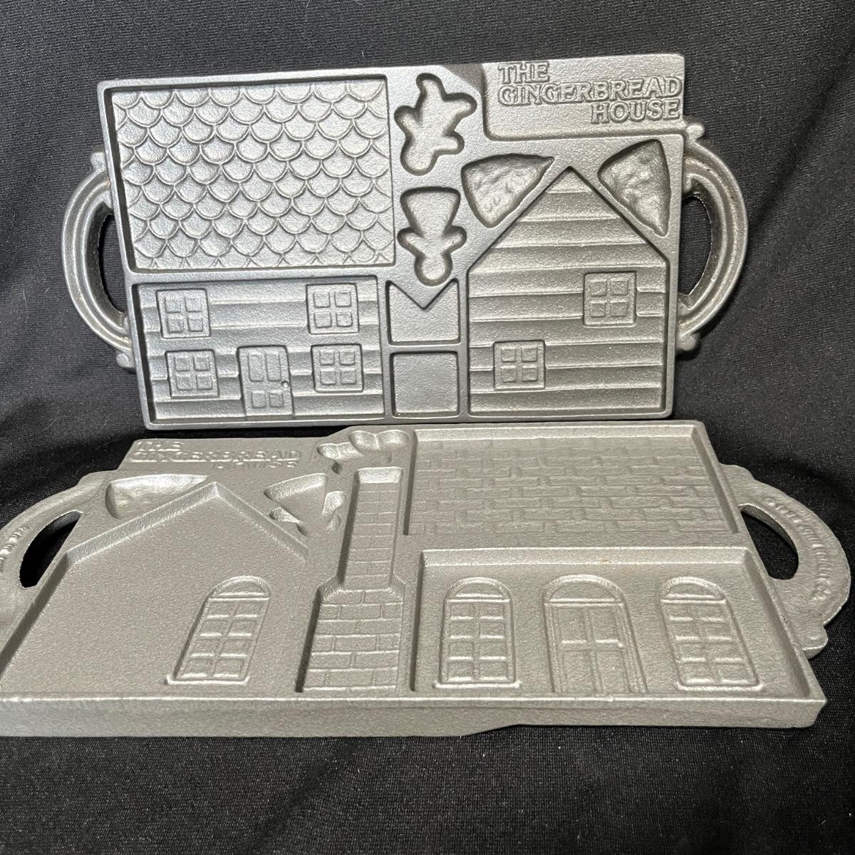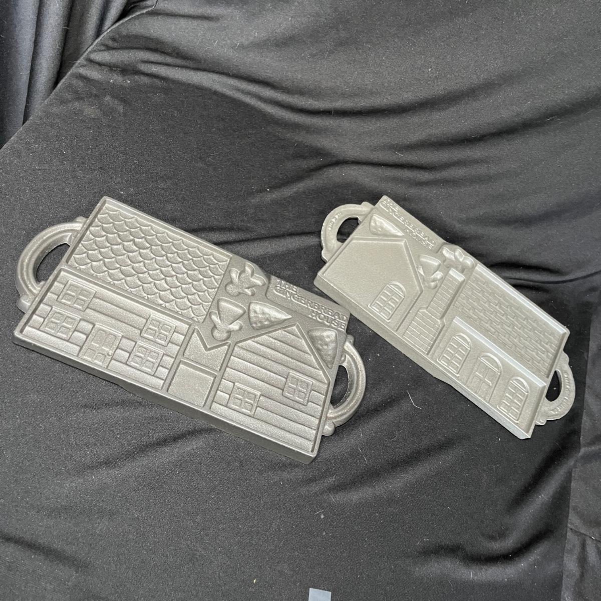 2 cast iron ginger bread house molds