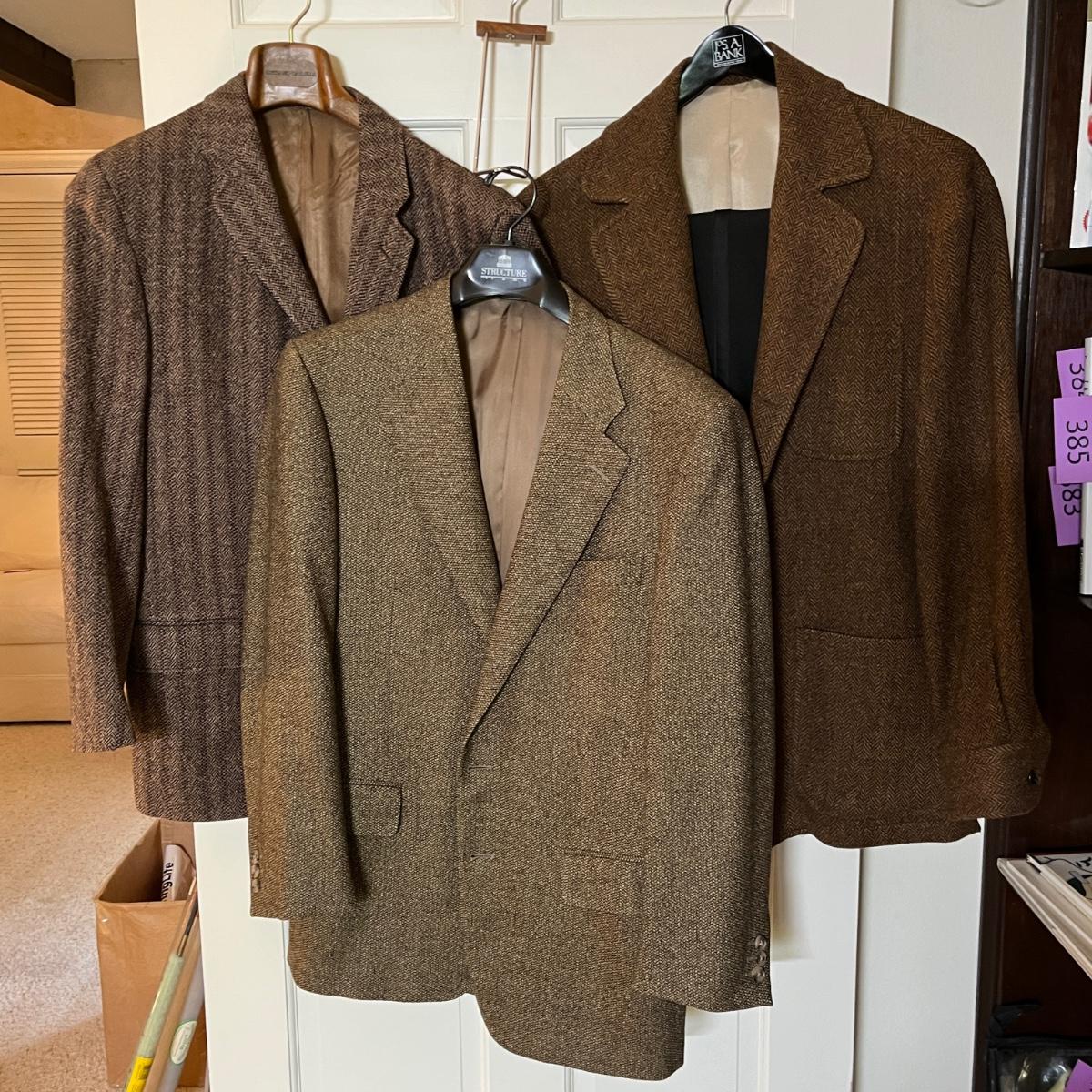 A note on Men's Clothing. Most suits are 42 or 44 R. Not all Blazers come with slacks. Slacks are 34. Shirts are 16, and shoes are 10-10.5