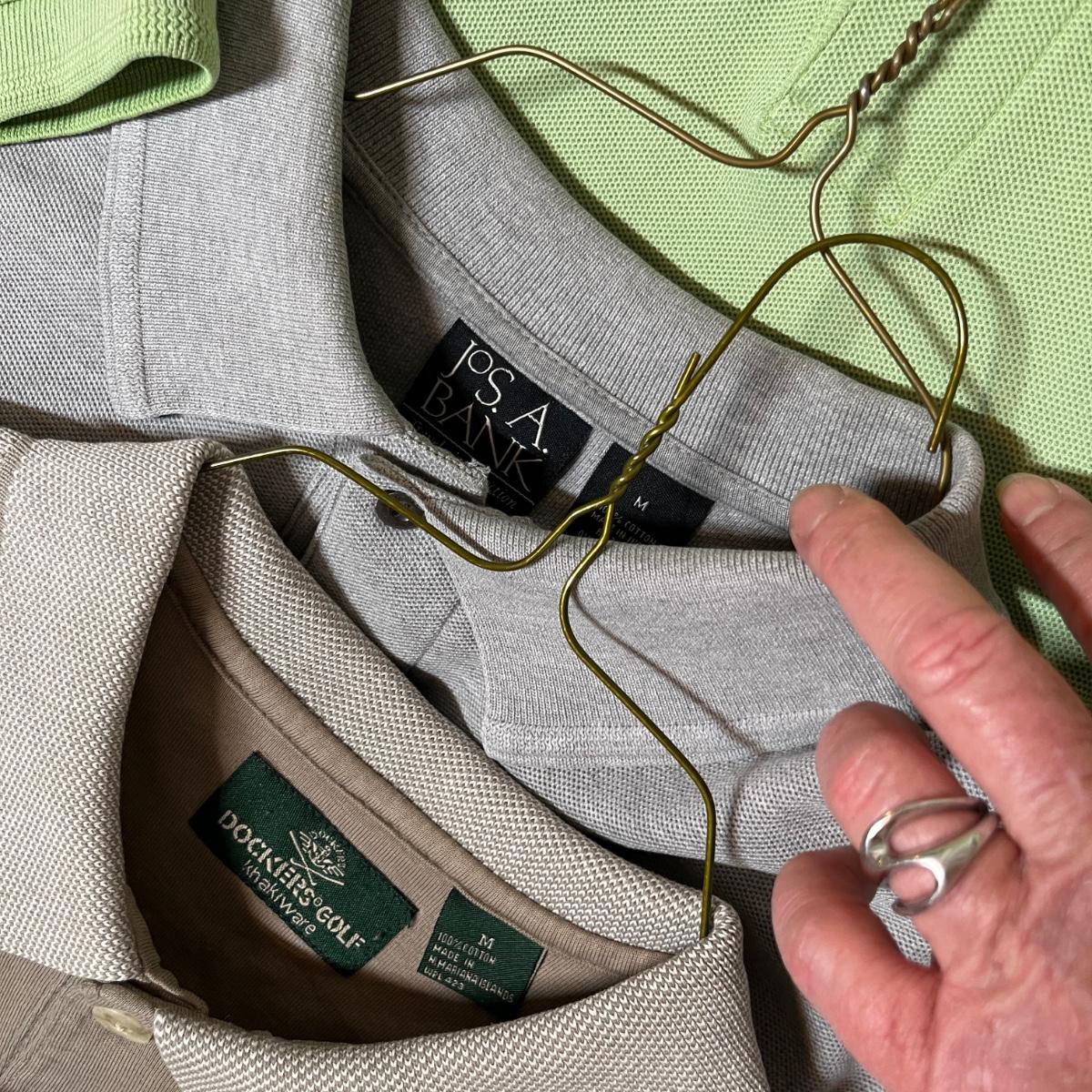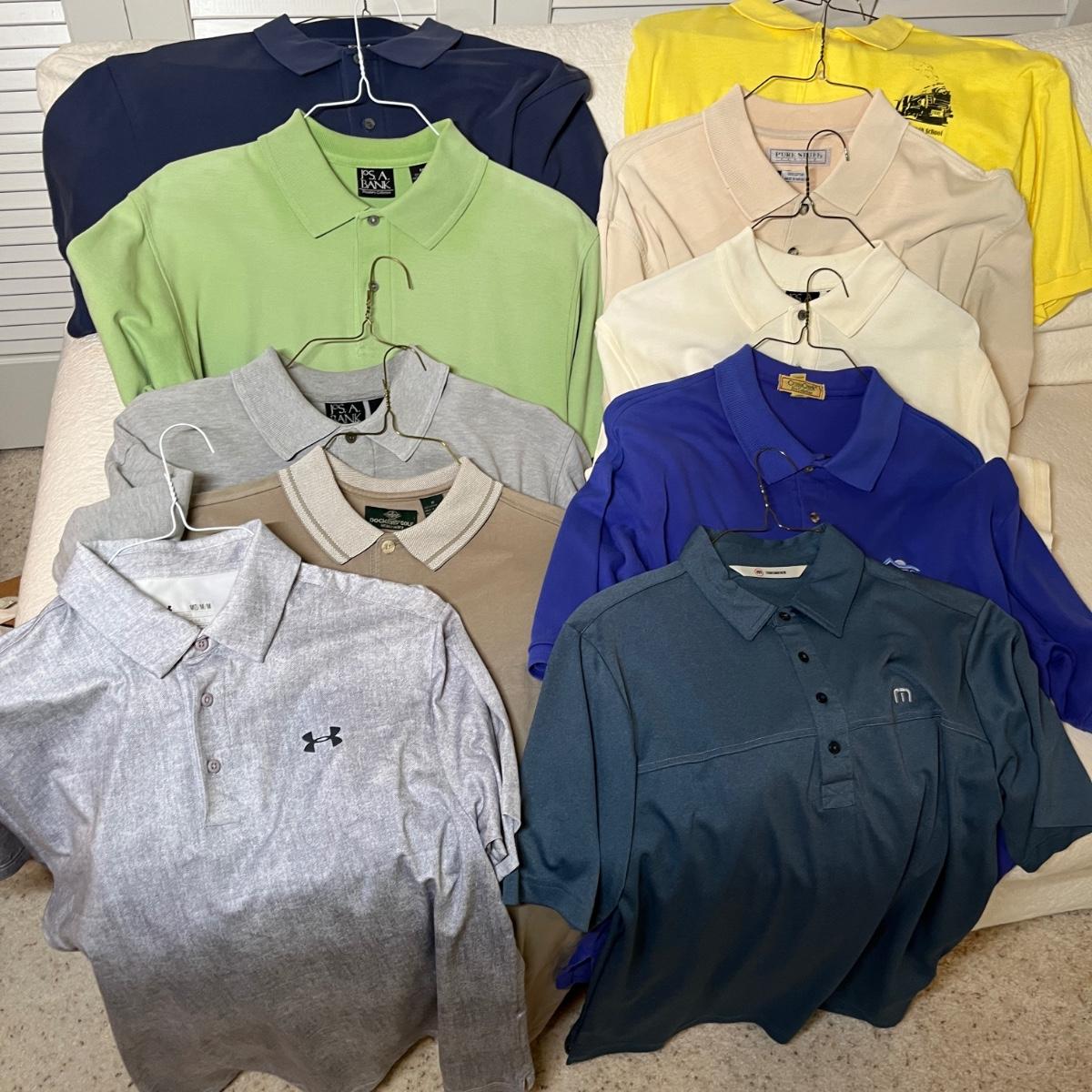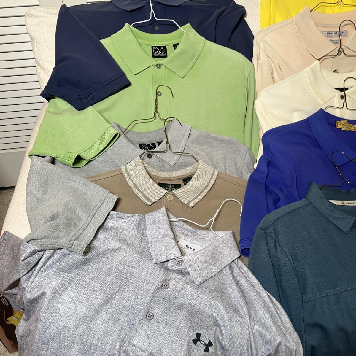 A note on Men's Clothing. Most suits are 42 or 44 R. Not all Blazers come with slacks. Slacks are 34. Shirts are 16, and shoes are 10-10.5