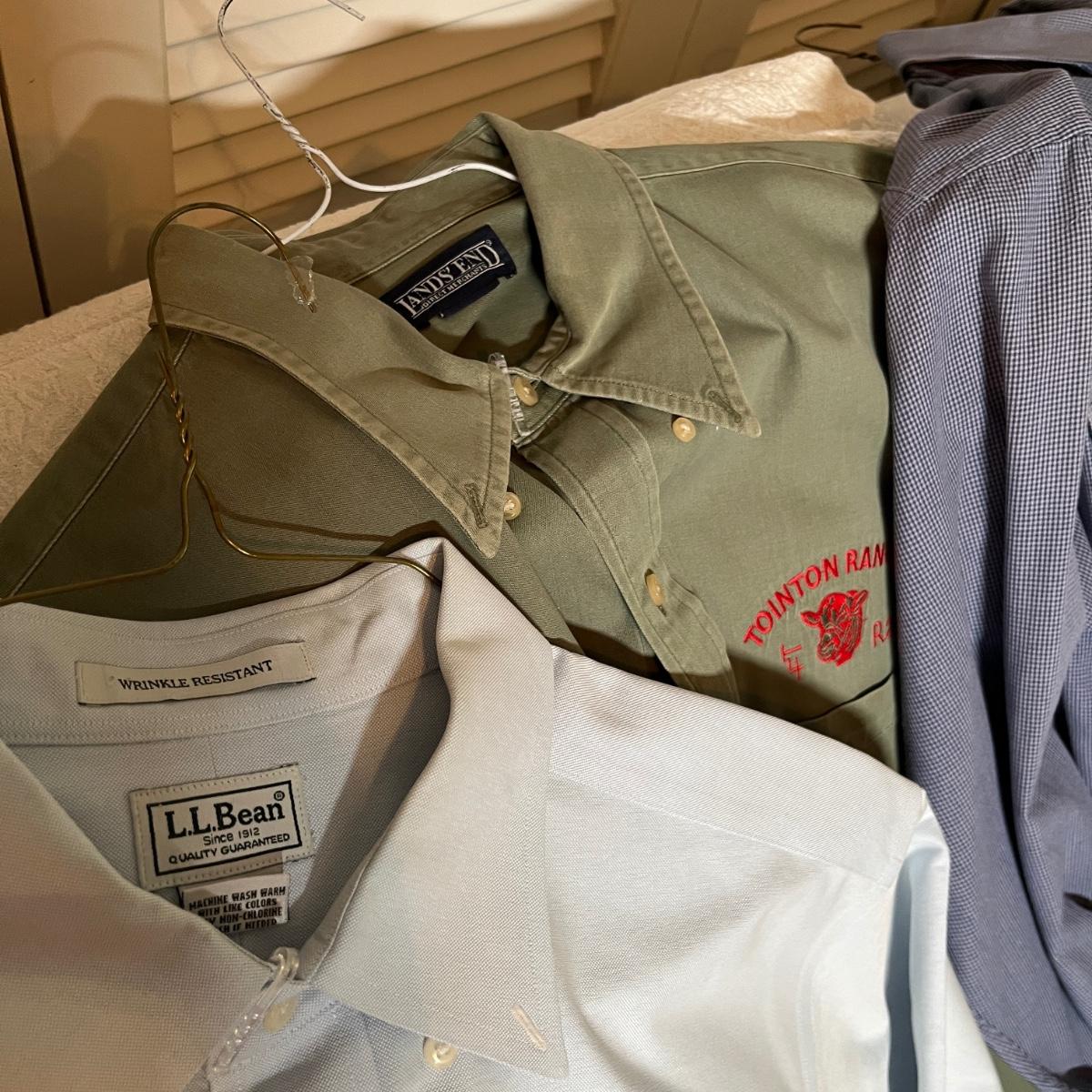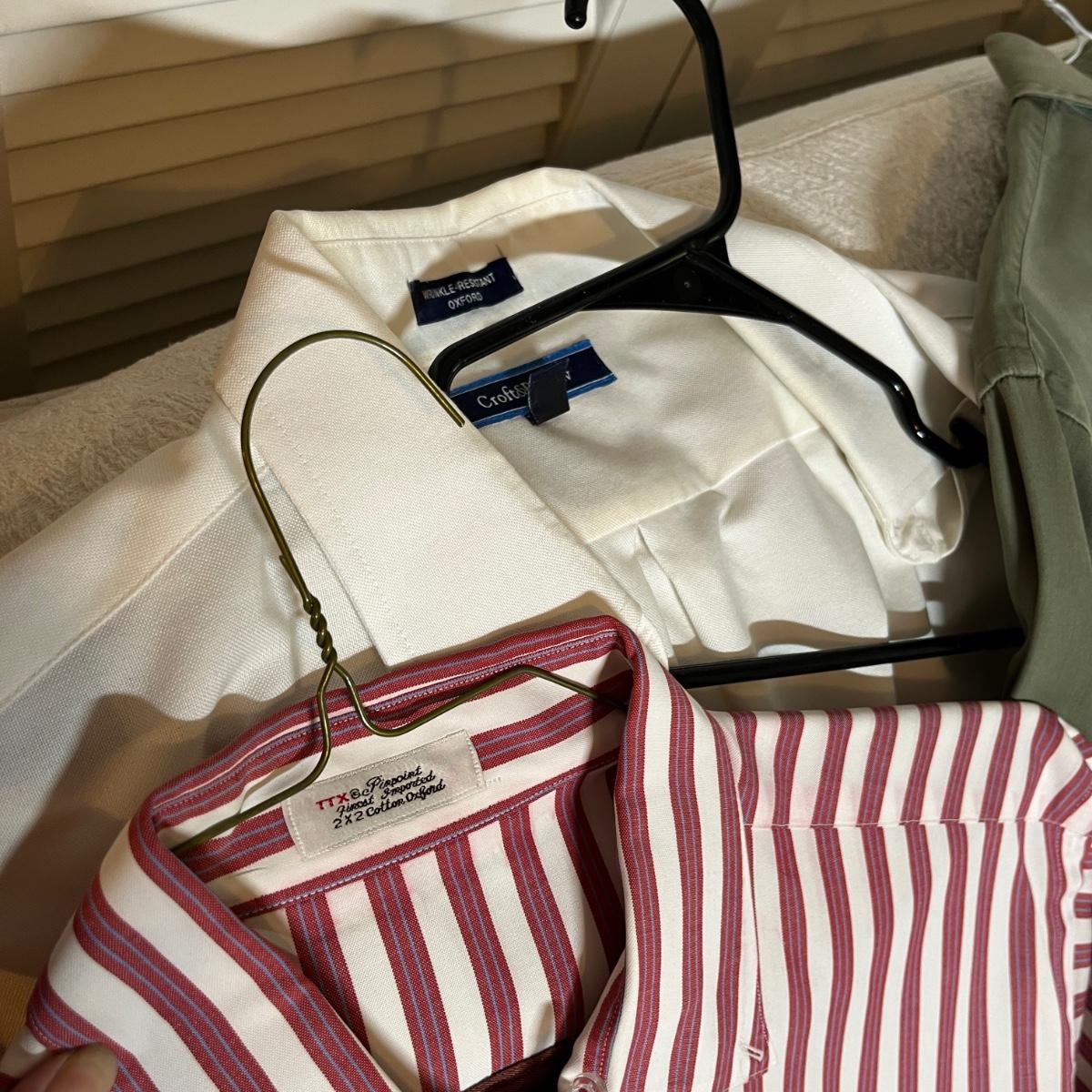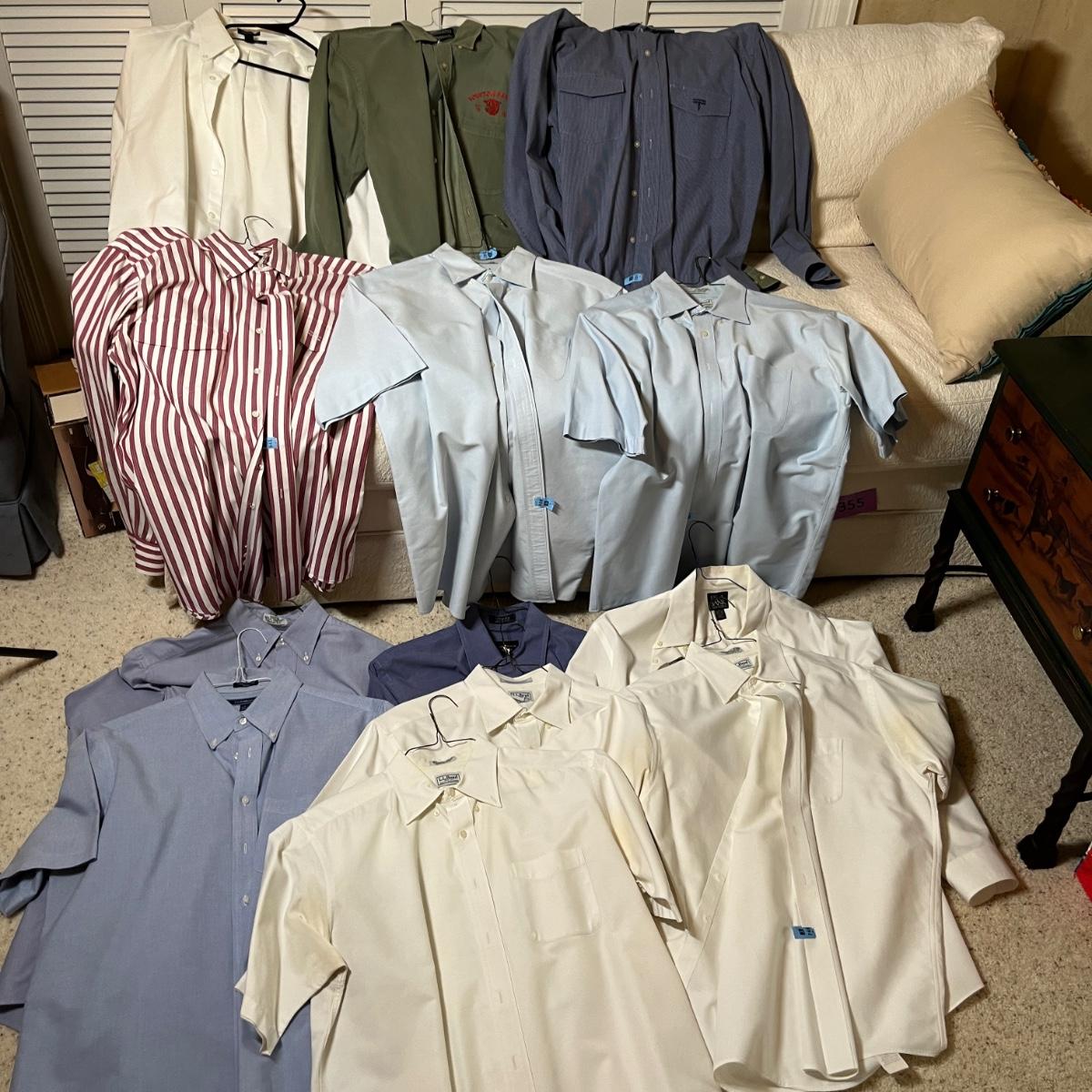 A note on Men's Clothing. Most suits are 42 or 44 R. Not all Blazers come with slacks. Slacks are 34. Shirts are 16, and shoes are 10-10.5