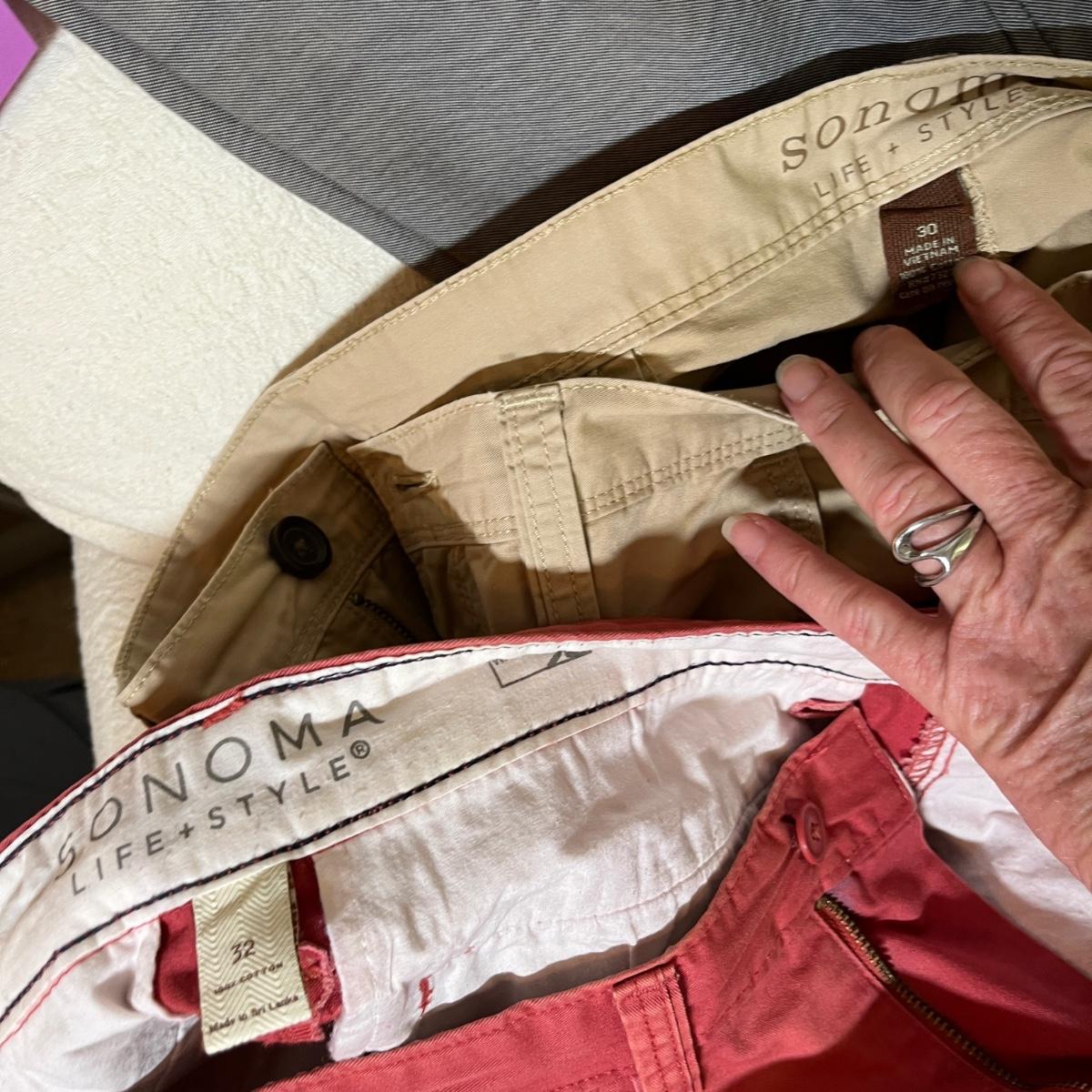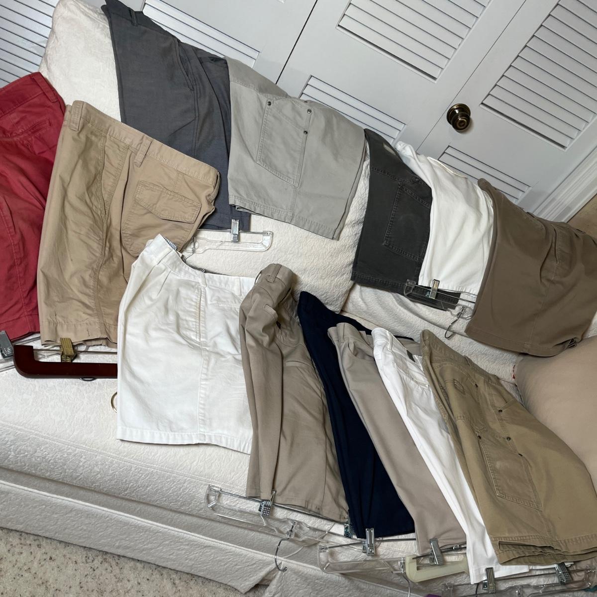 A note on Men's Clothing. Most suits are 42 or 44 R. Not all Blazers come with slacks. Slacks are 34. Shirts are 16, and shoes are 10-10.5
