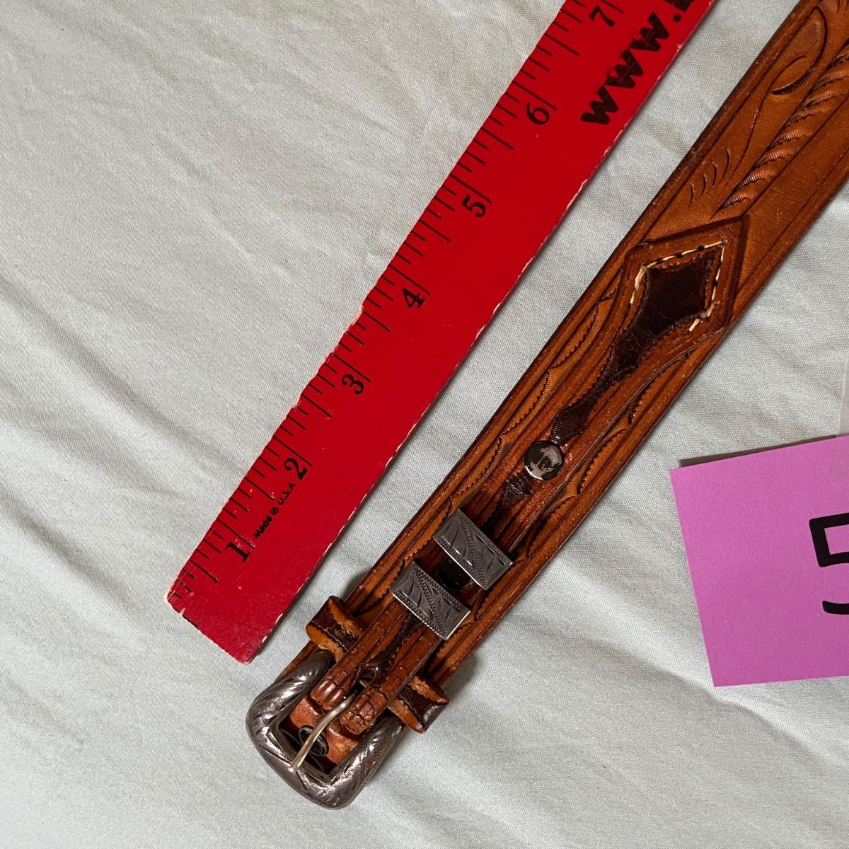 This is a western all leather belt. The buckle, rings, and tip are all Sterling Silver!