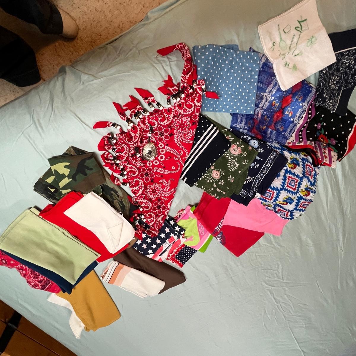 8. Sizes are approximate, you can estimate as our lot number signs are 3.5" long. Also we use an 18" & 36" measuring stick.  We try on certain things to do actual measurements. No guarantees on actual sizes, we try our best!