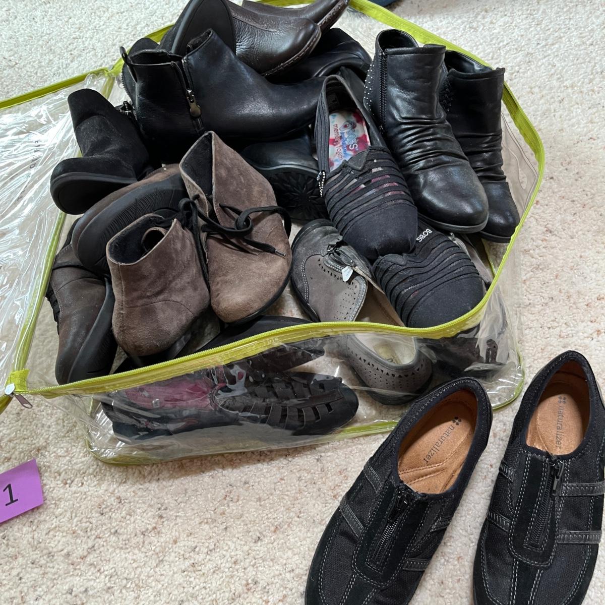 8. Sizes are approximate, you can estimate as our lot number signs are 3.5" long. Also we use an 18" & 36" measuring stick.  We try on certain things to do actual measurements. No guarantees on actual sizes, we try our best!