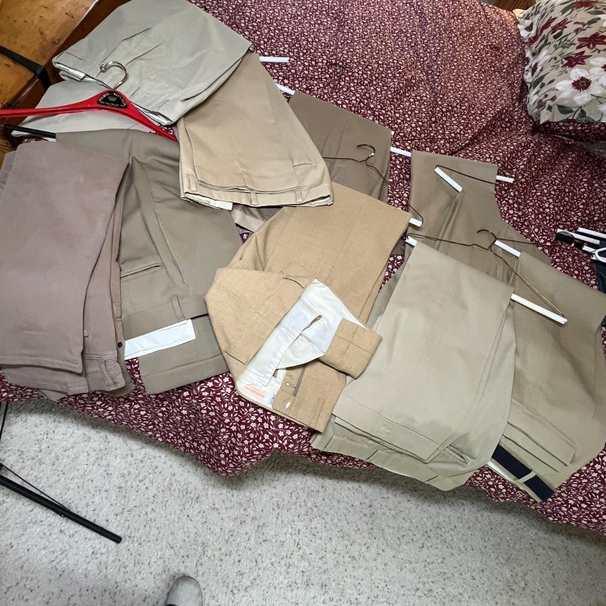 A note on Men's Clothing. Most suits are 42 or 44 R. Not all Blazers come with slacks. Slacks are 34. Shirts are 16, and shoes are 10-10.5