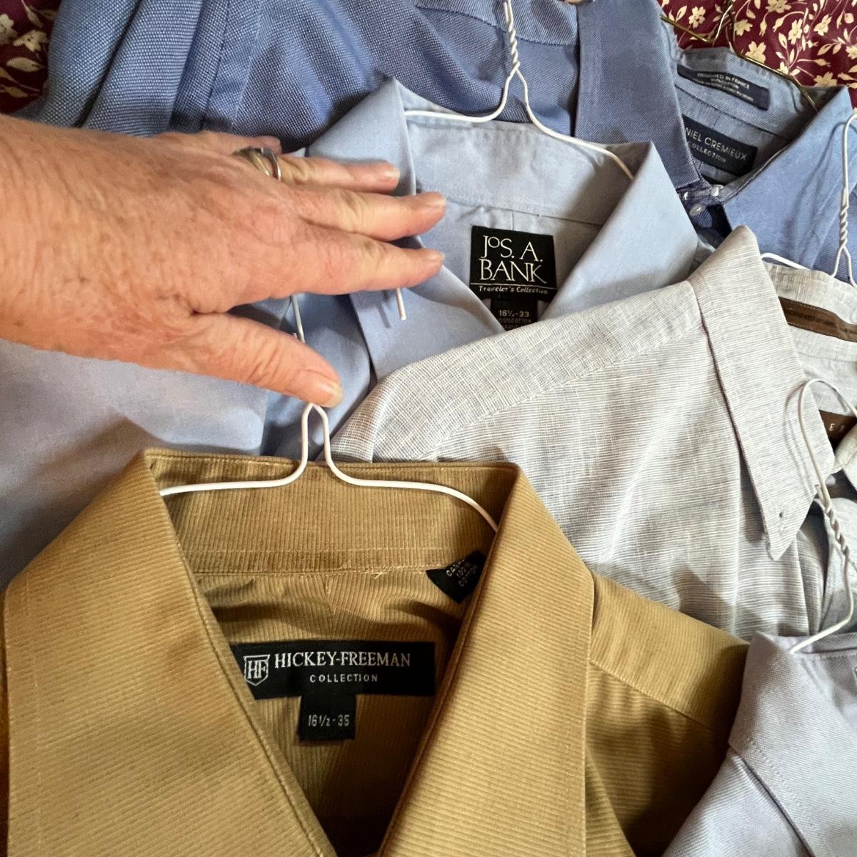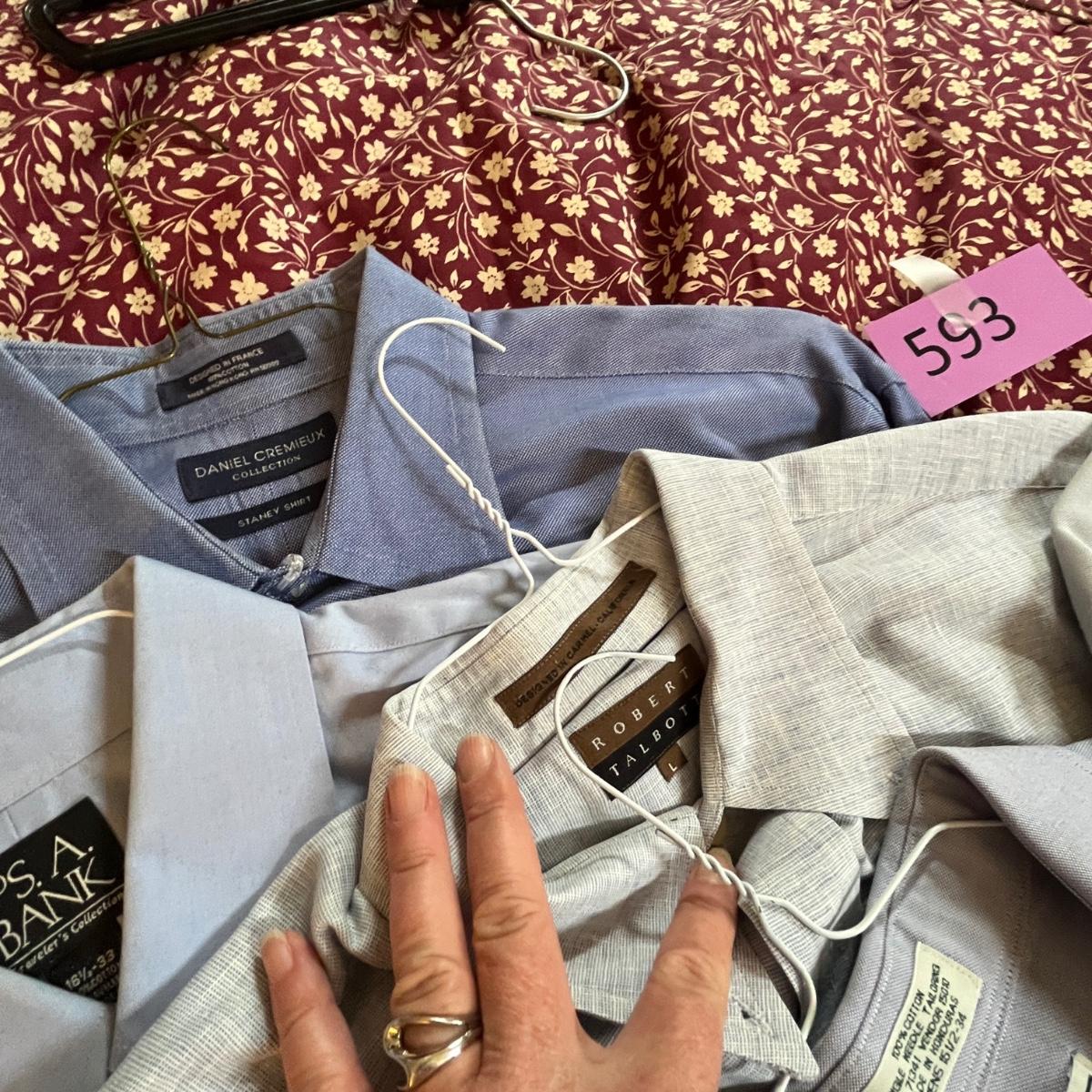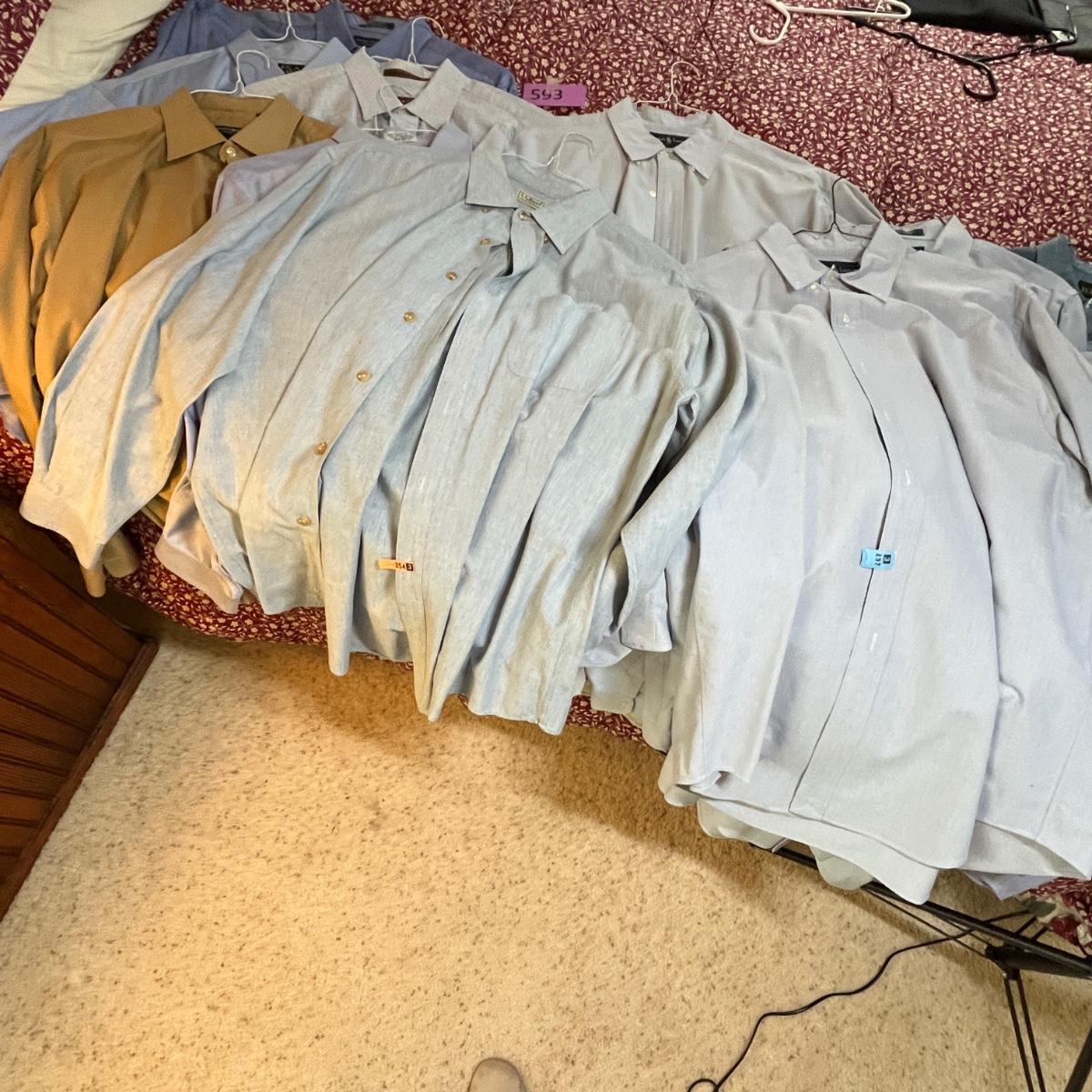A note on Men's Clothing. Most suits are 42 or 44 R. Not all Blazers come with slacks. Slacks are 34. Shirts are 16, and shoes are 10-10.5