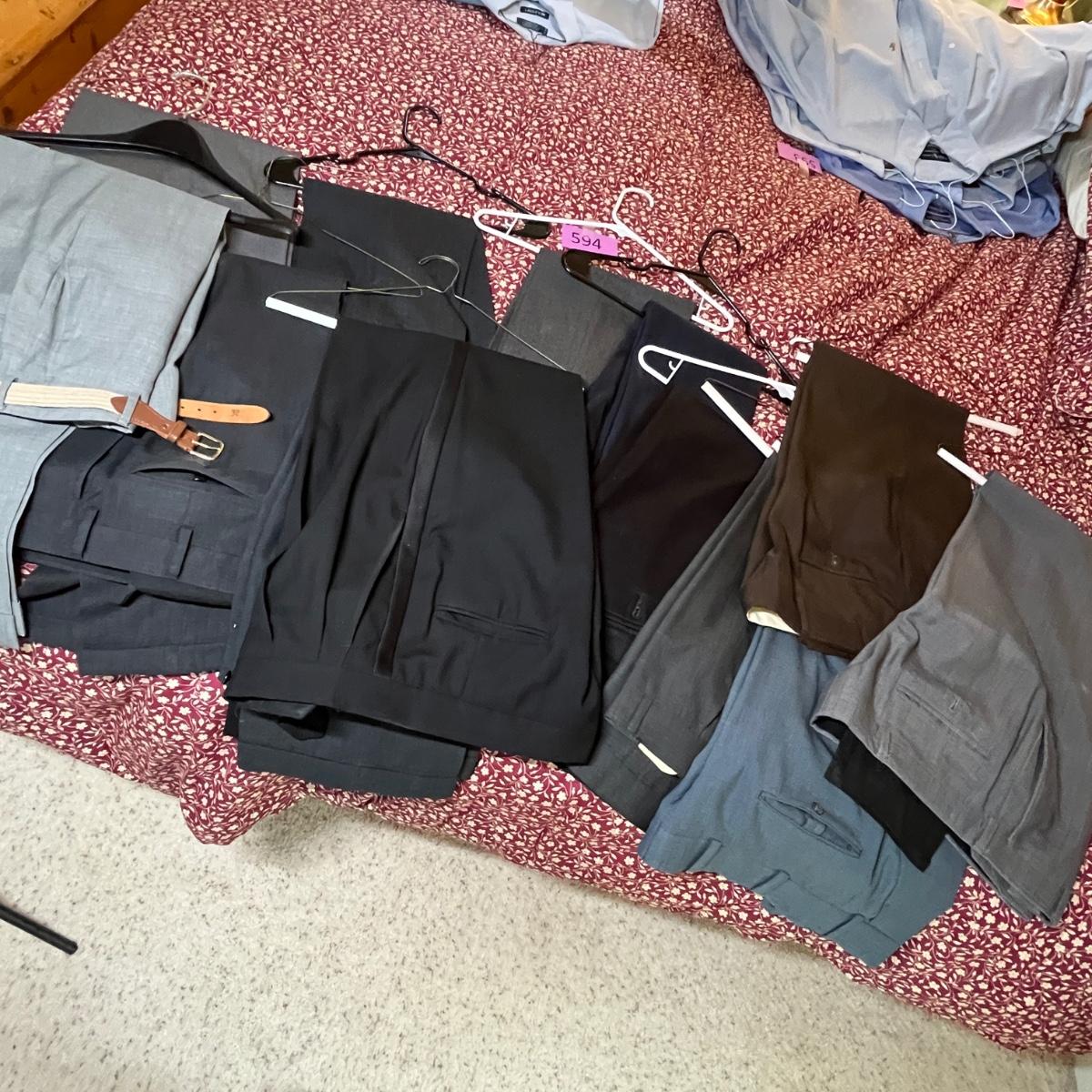 A note on Men's Clothing. Most suits are 42 or 44 R. Not all Blazers come with slacks. Slacks are 34. Shirts are 16, and shoes are 10-10.5