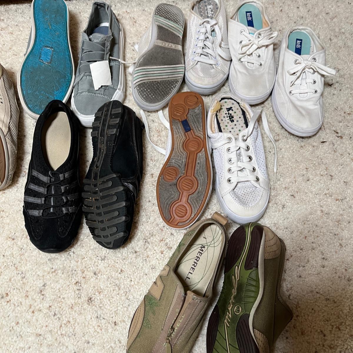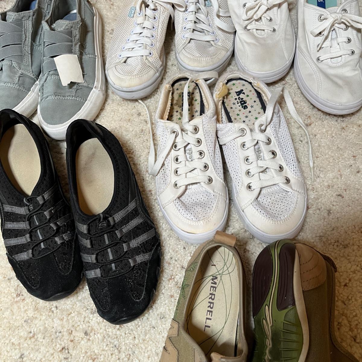 8. Sizes are approximate, you can estimate as our lot number signs are 3.5" long. Also we use an 18" & 36" measuring stick.  We try on certain things to do actual measurements. No guarantees on actual sizes, we try our best!