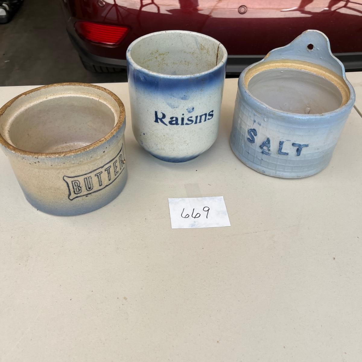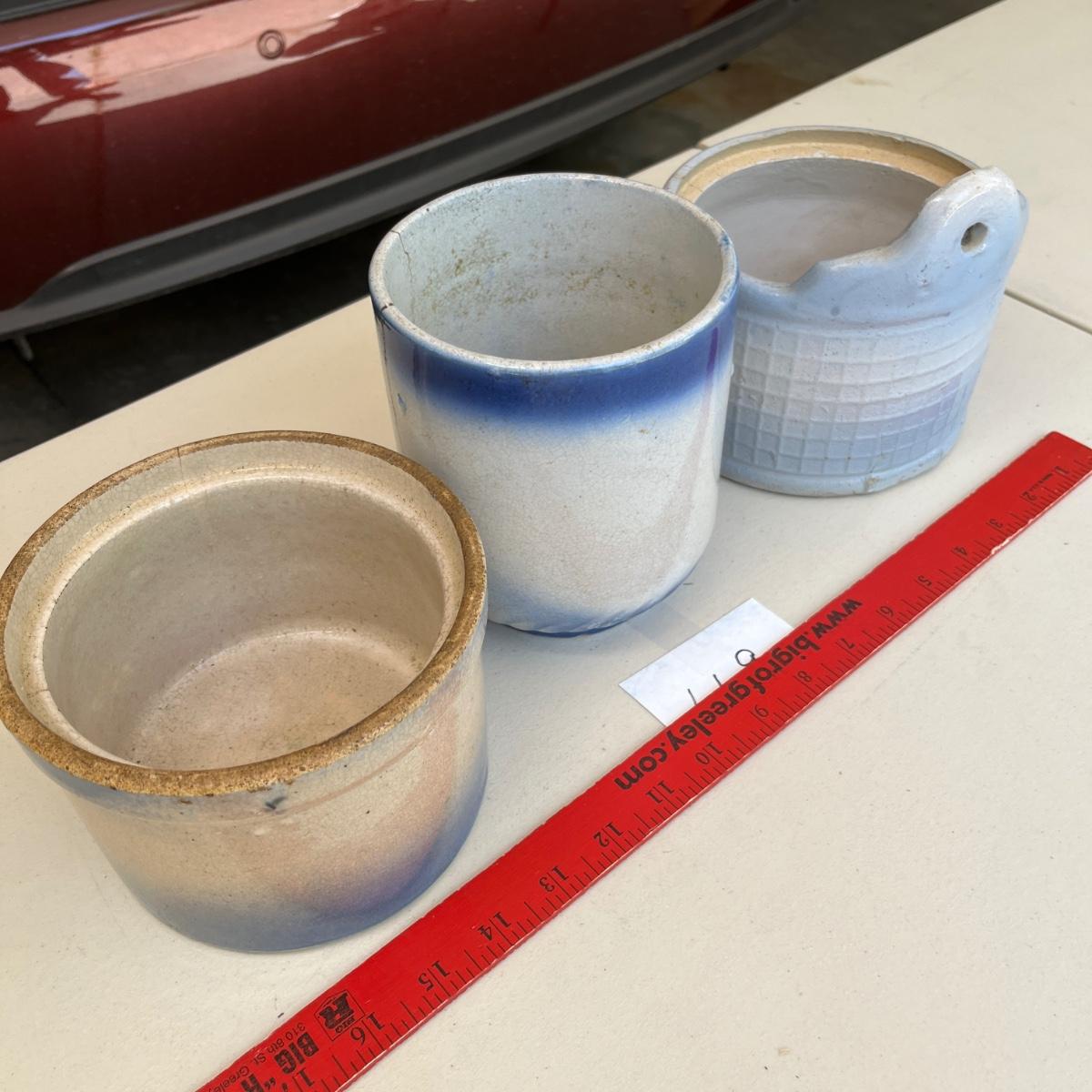 3 salt glazed crocks