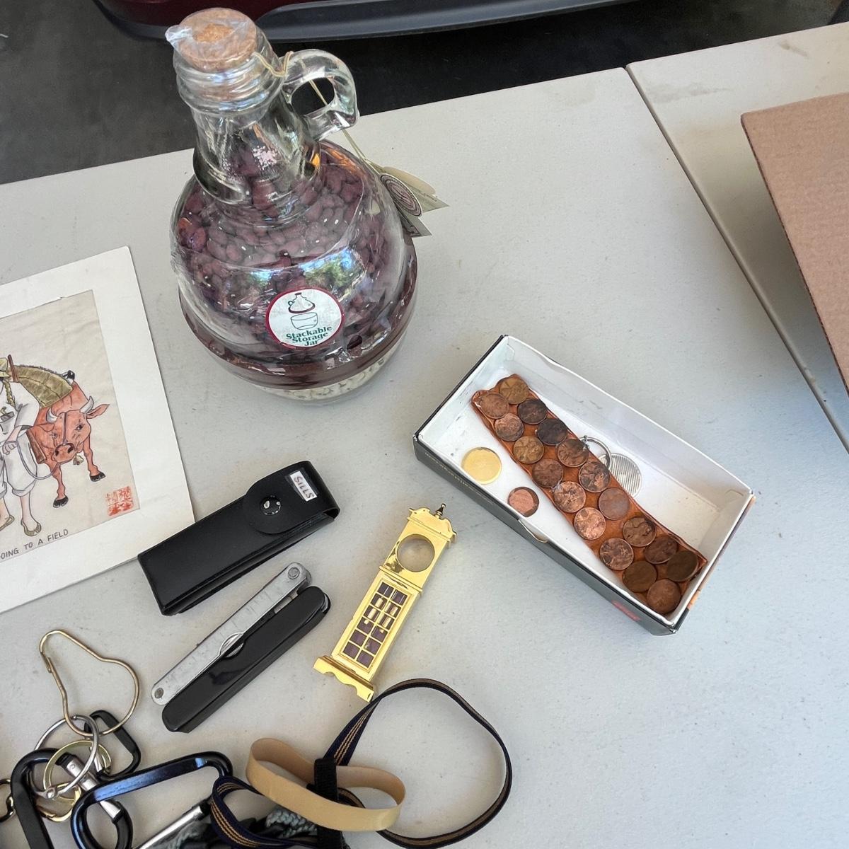 8. Sizes are approximate, you can estimate as our lot number signs are 3.5" long. Also we use an 18" & 36" measuring stick.  We try on certain things to do actual measurements. No guarantees on actual sizes, we try our best!