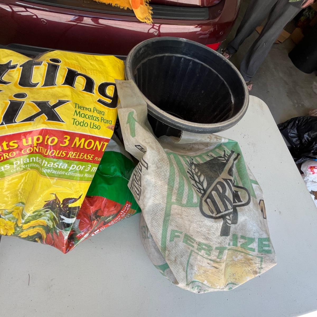 The bag is 1/4 full. 2 Great Terra Cotta pots.