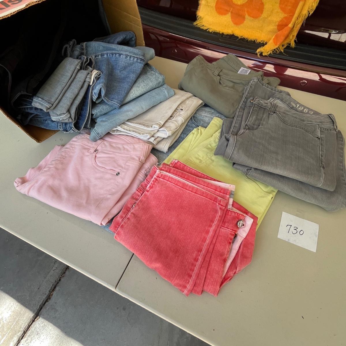 8. Sizes are approximate, you can estimate as our lot number signs are 3.5" long. Also we use an 18" & 36" measuring stick.  We try on certain things to do actual measurements. No guarantees on actual sizes, we try our best!