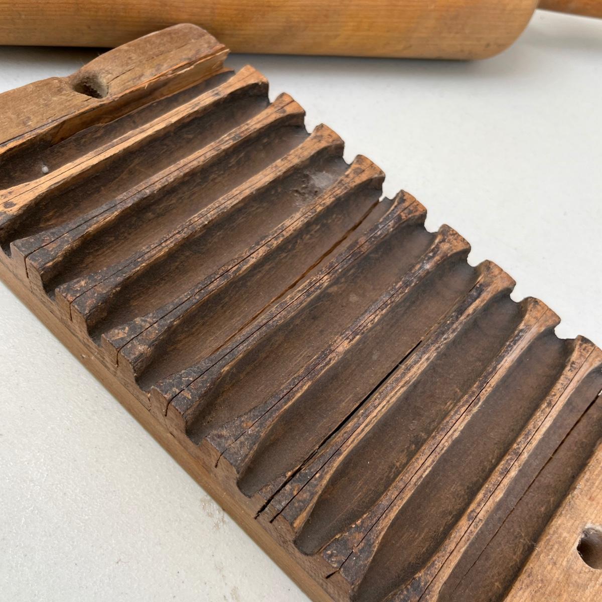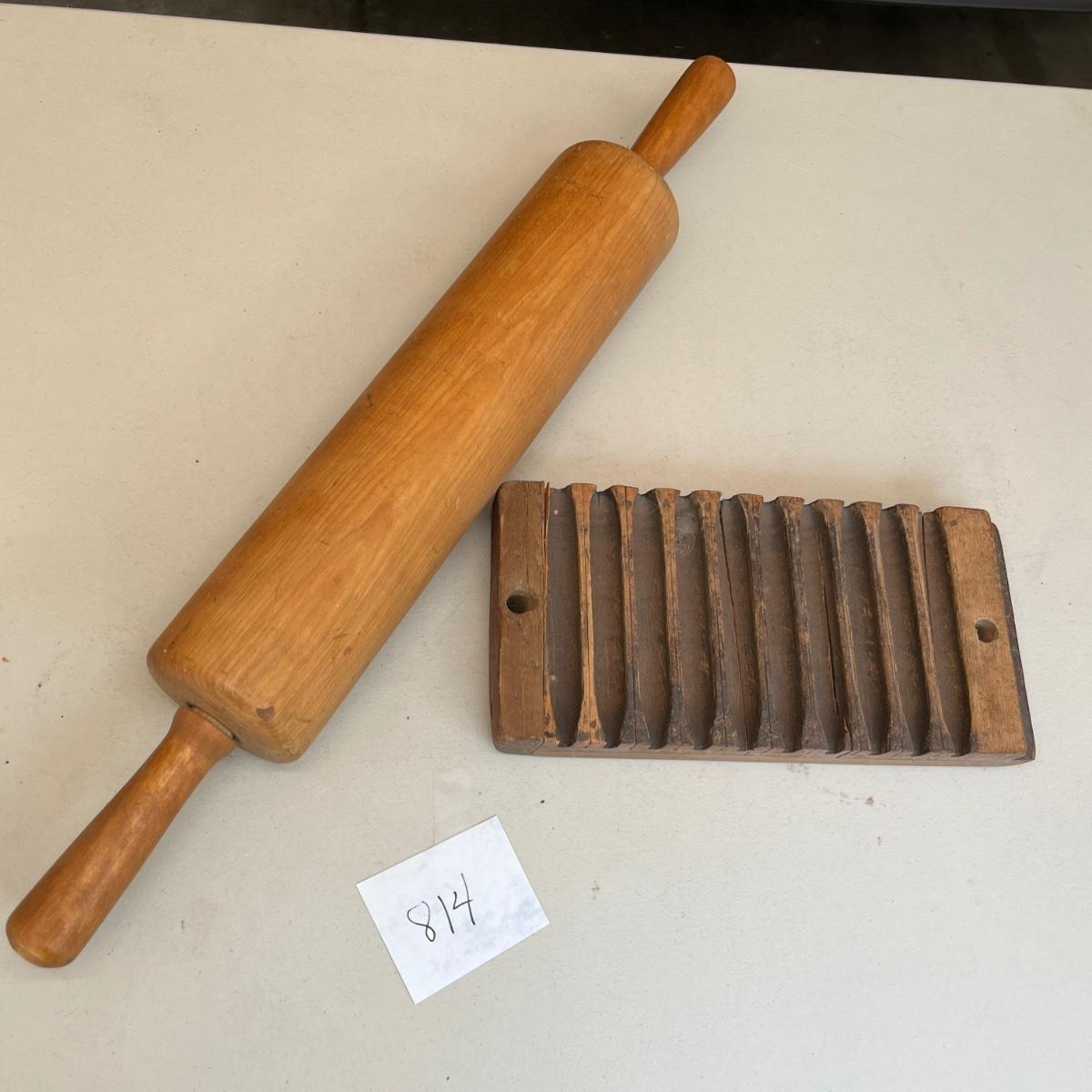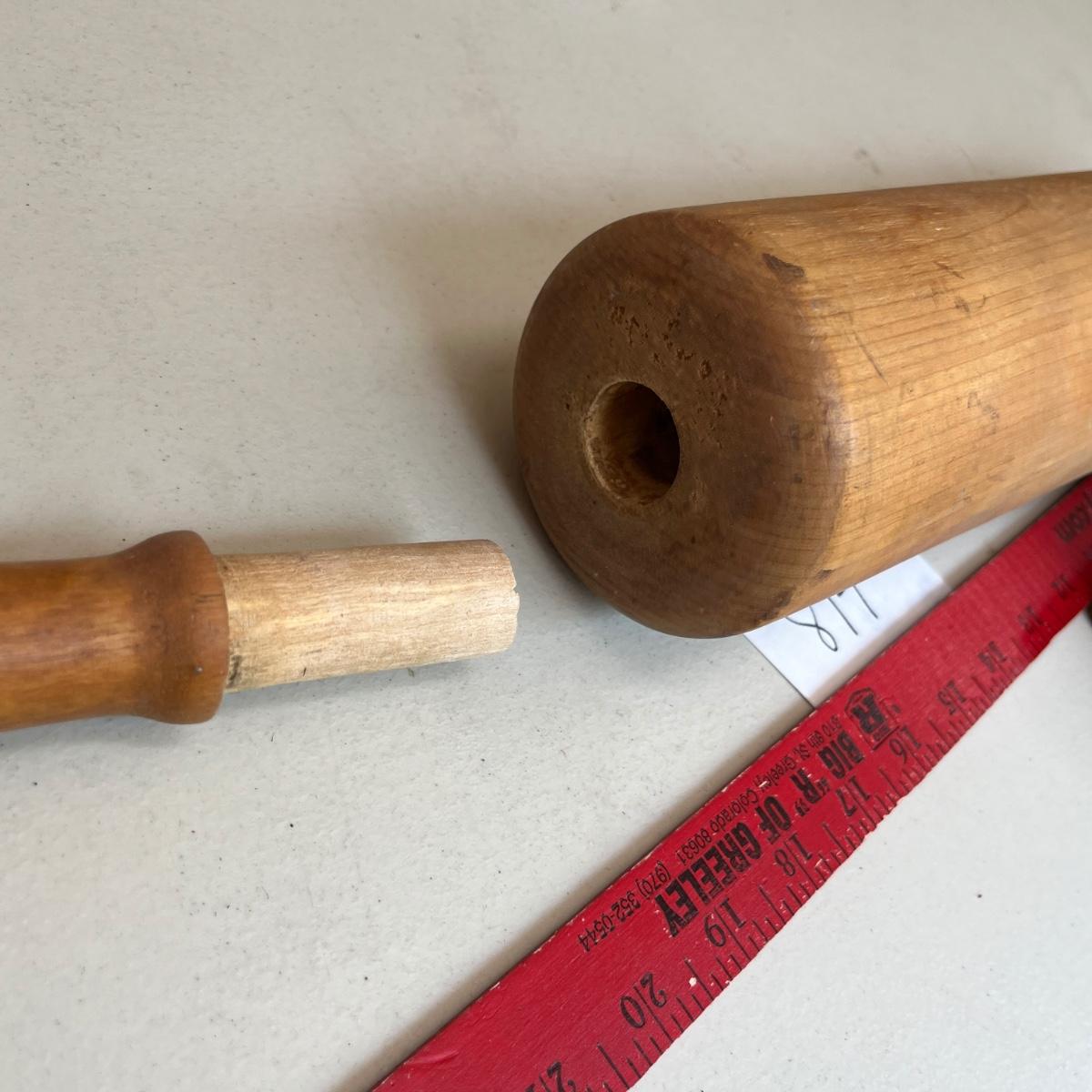 The one handle on the rolling pin needs re-glued. There is no top for the cigar mold.