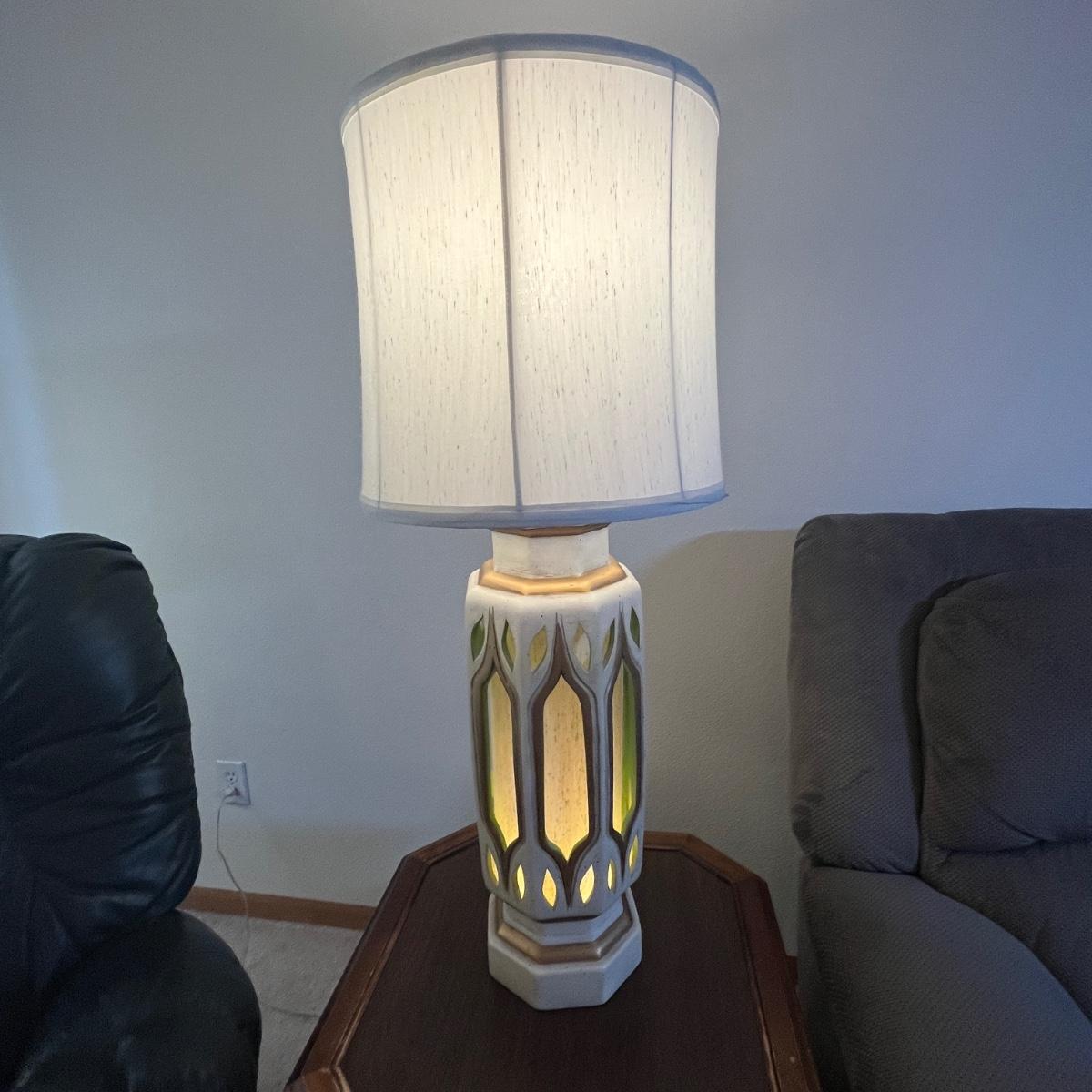 This has a bulb inside so you can light up the base too! No damage. Great 60s design.