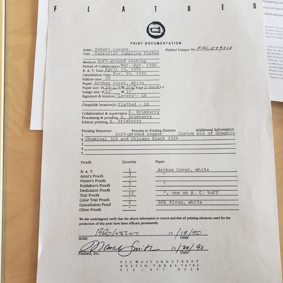 Signed/Numbered Print of “Terrorist Juggling Plates” by Robert L. Levers, Jr. (E-BBL)