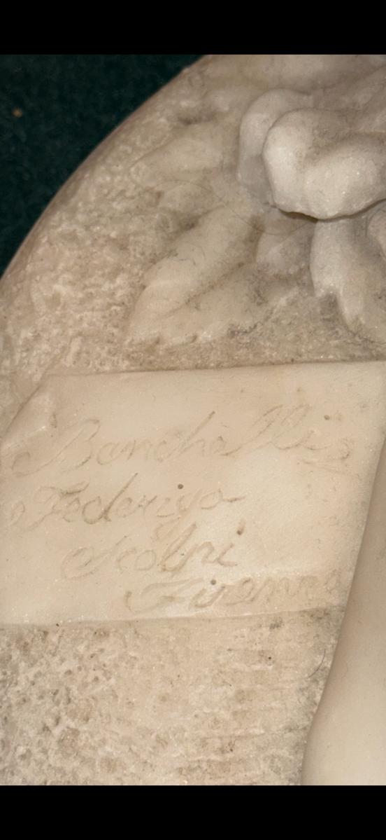 Marble statue-signed by the artist stands 33" tall. 1st floor.