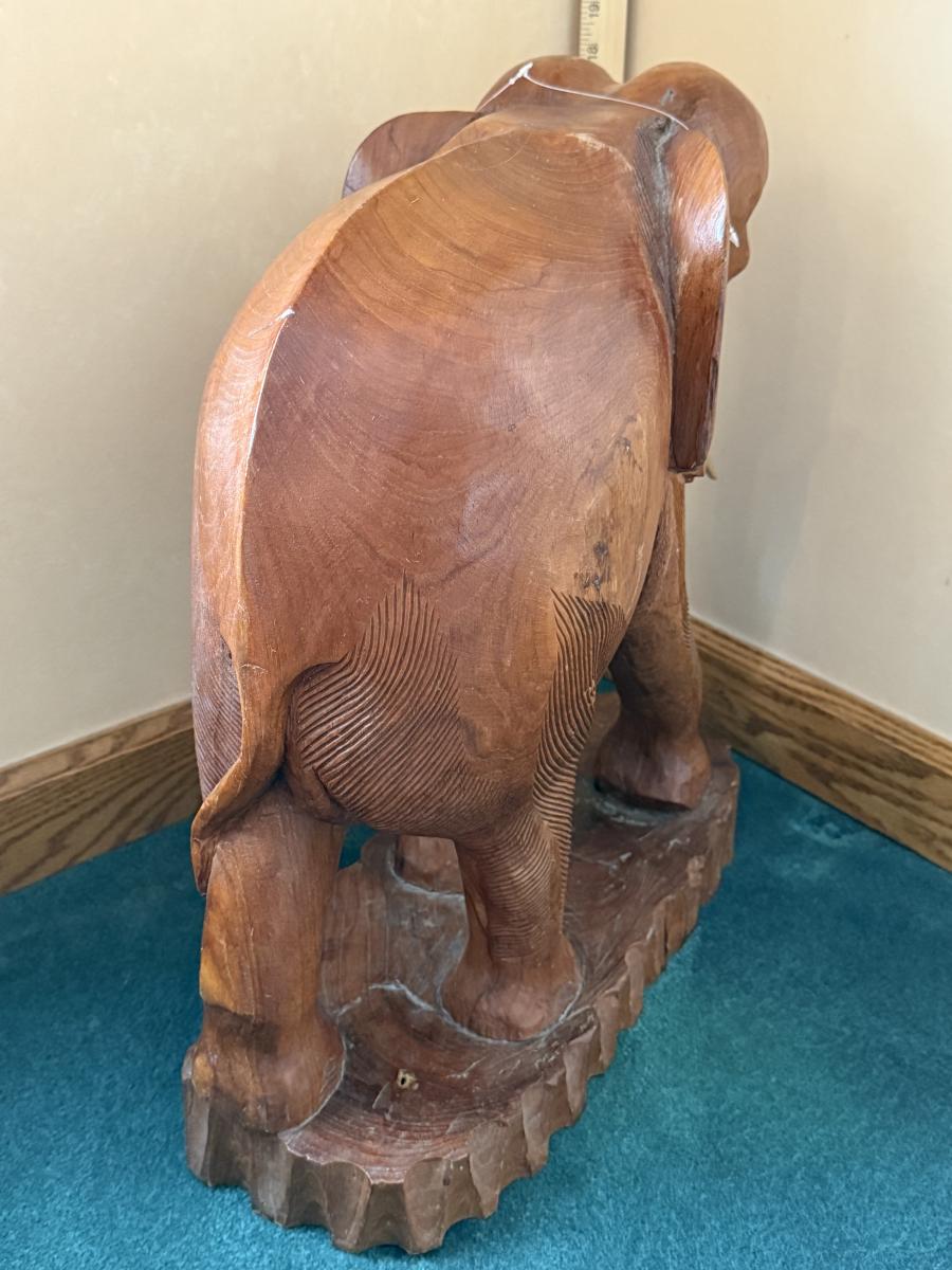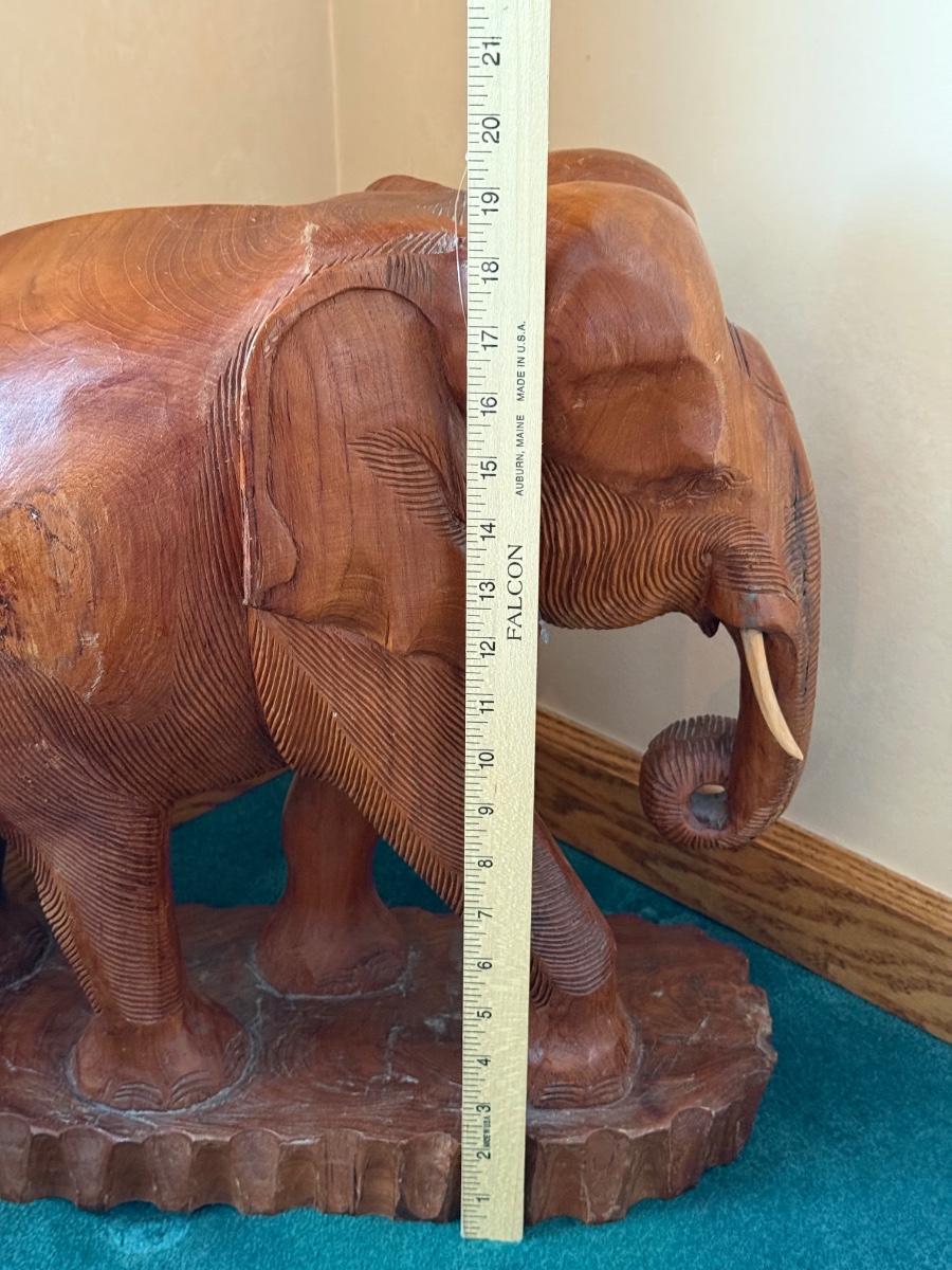 Solid Teak carved elephant stands 19" high