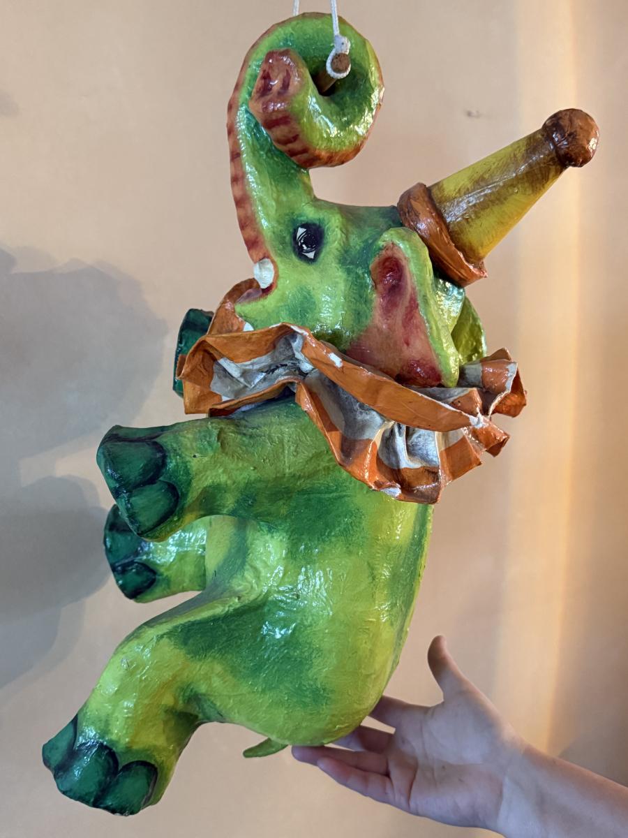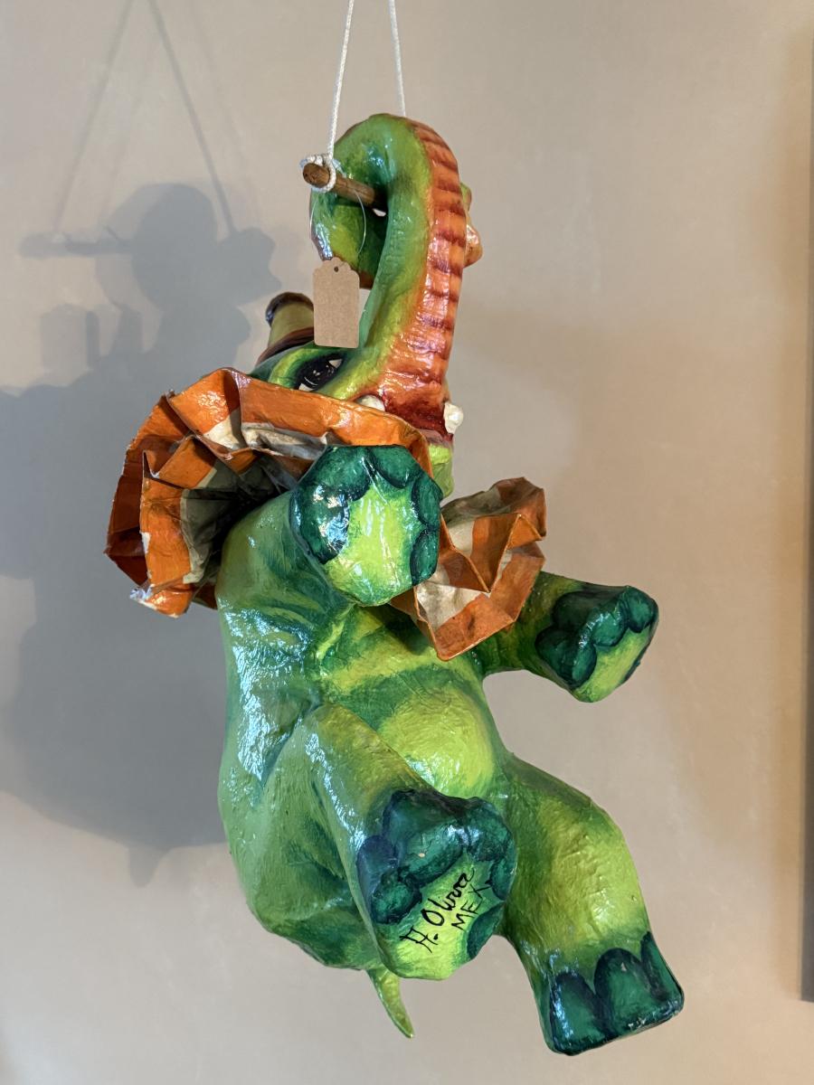 Paper Mache circus elephant from Mexico--signed by artist--21" long