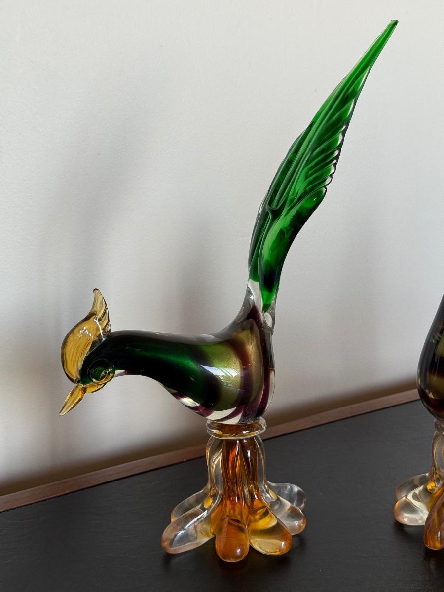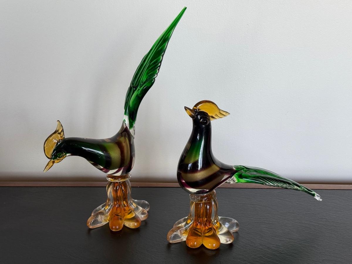TWO Mid-Century Murano Glass Pheasant Figurines