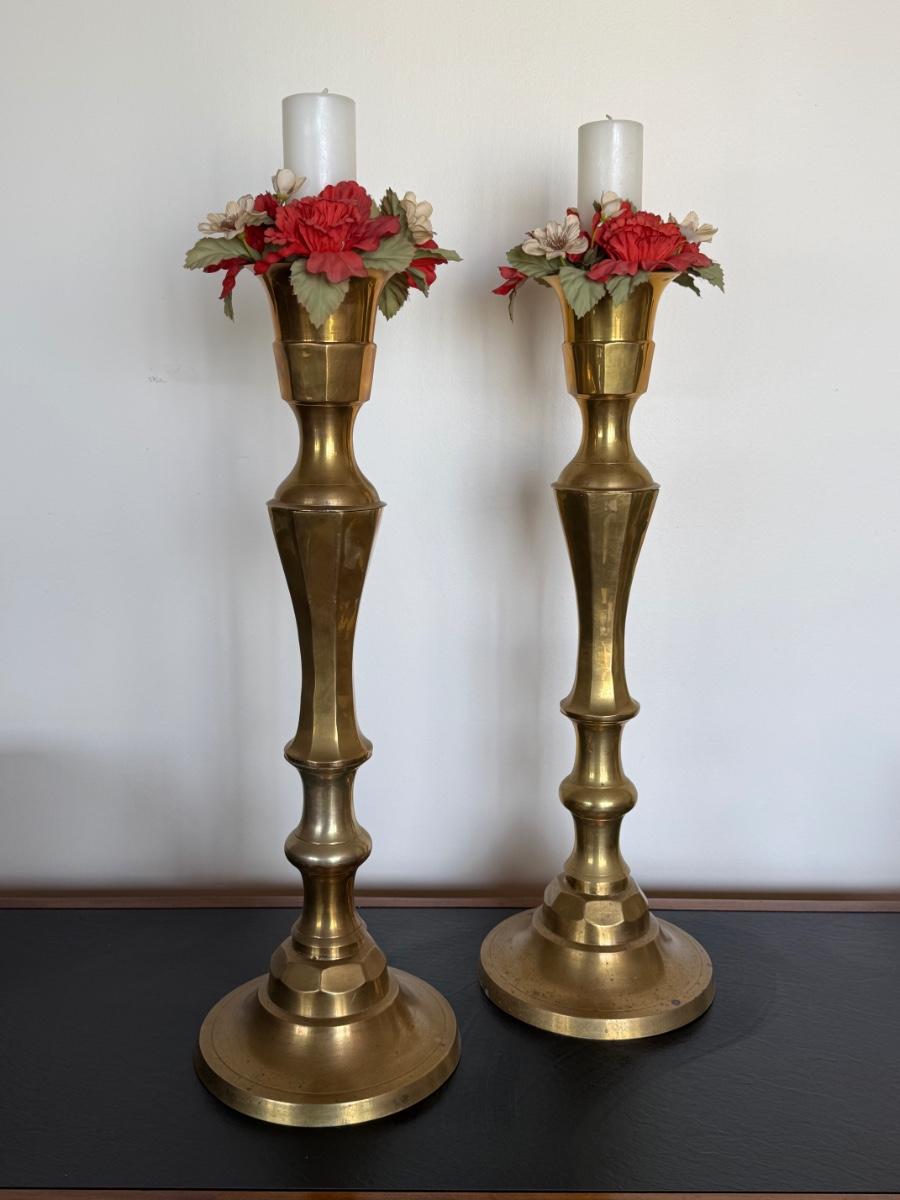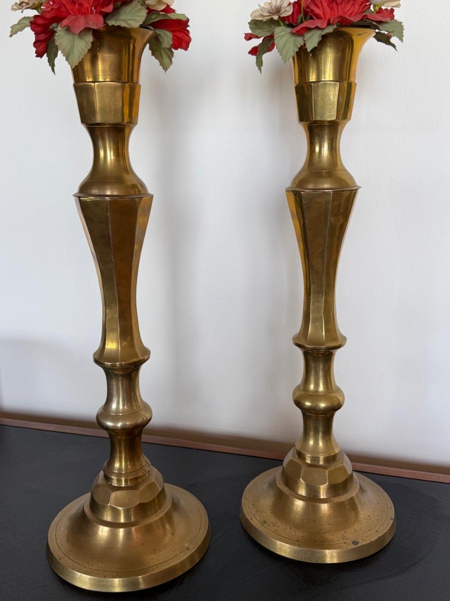 TWO Large Floor Standing Solid Brass Candle Holders