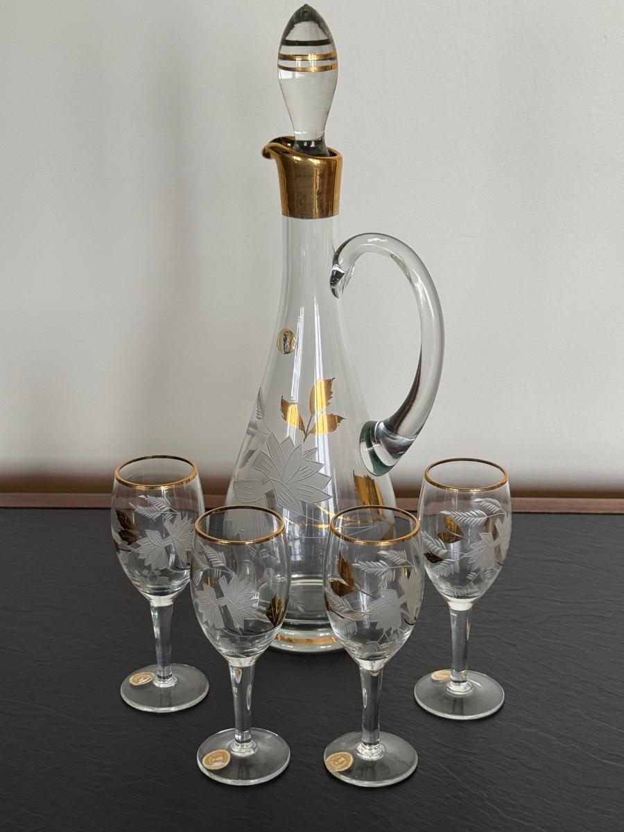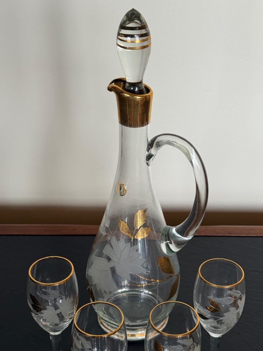 Mid-Century Romanian Crystal Decanter and Cordial Glasses Set