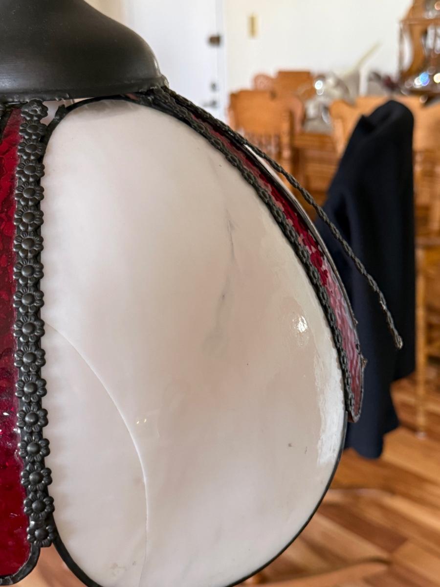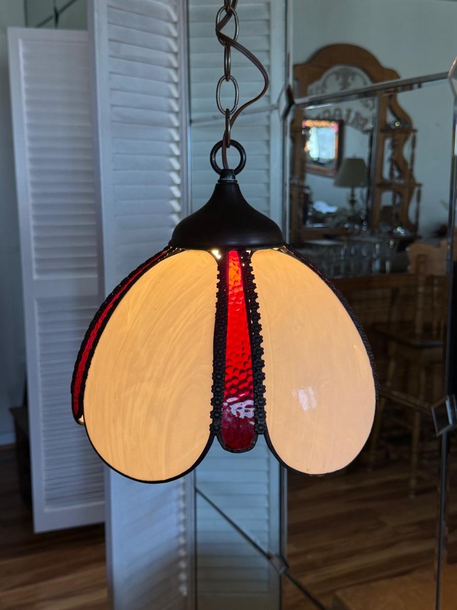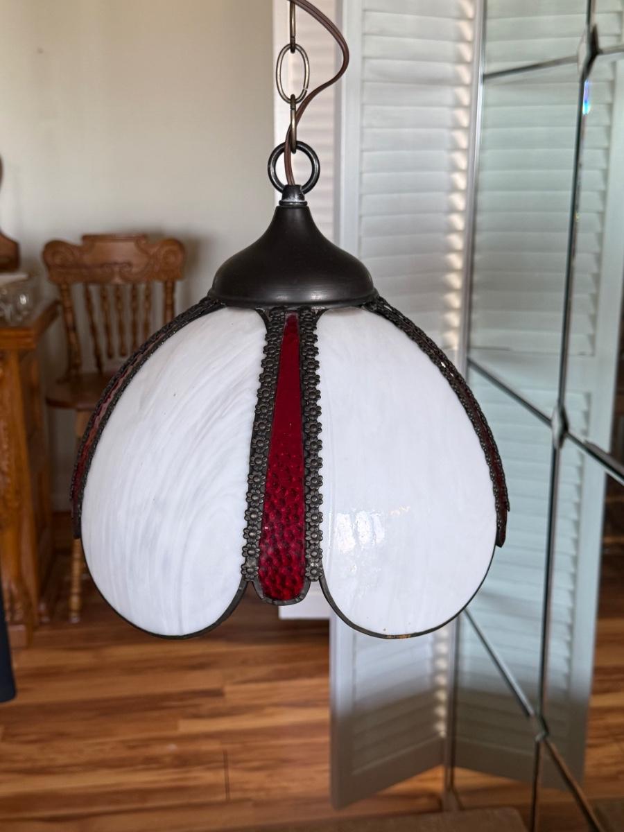 Vintage Mid-Century Slag Glass Tulip Hanging Swag Fixture