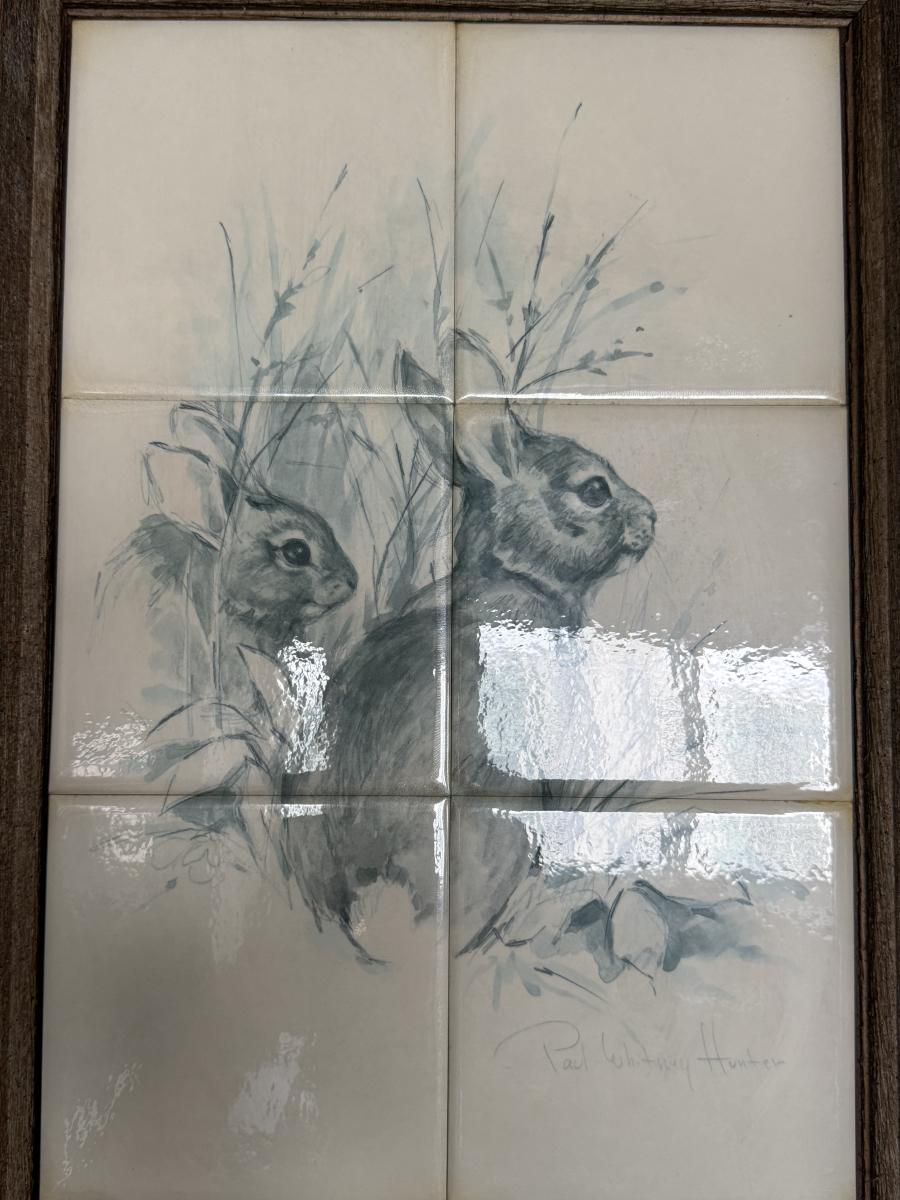 Ceramic Tile Rabit Drawing- Signed Paul Whitney Hunter 11" x 15.5"
