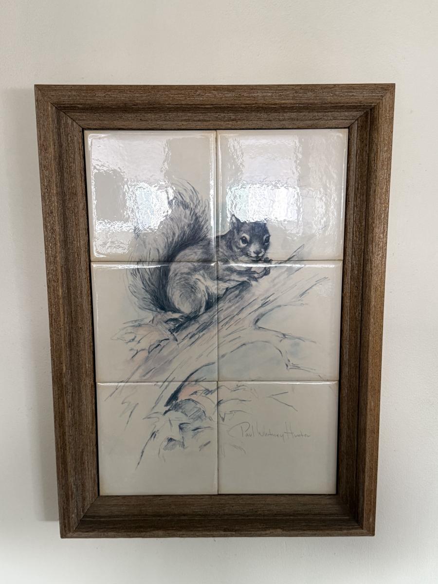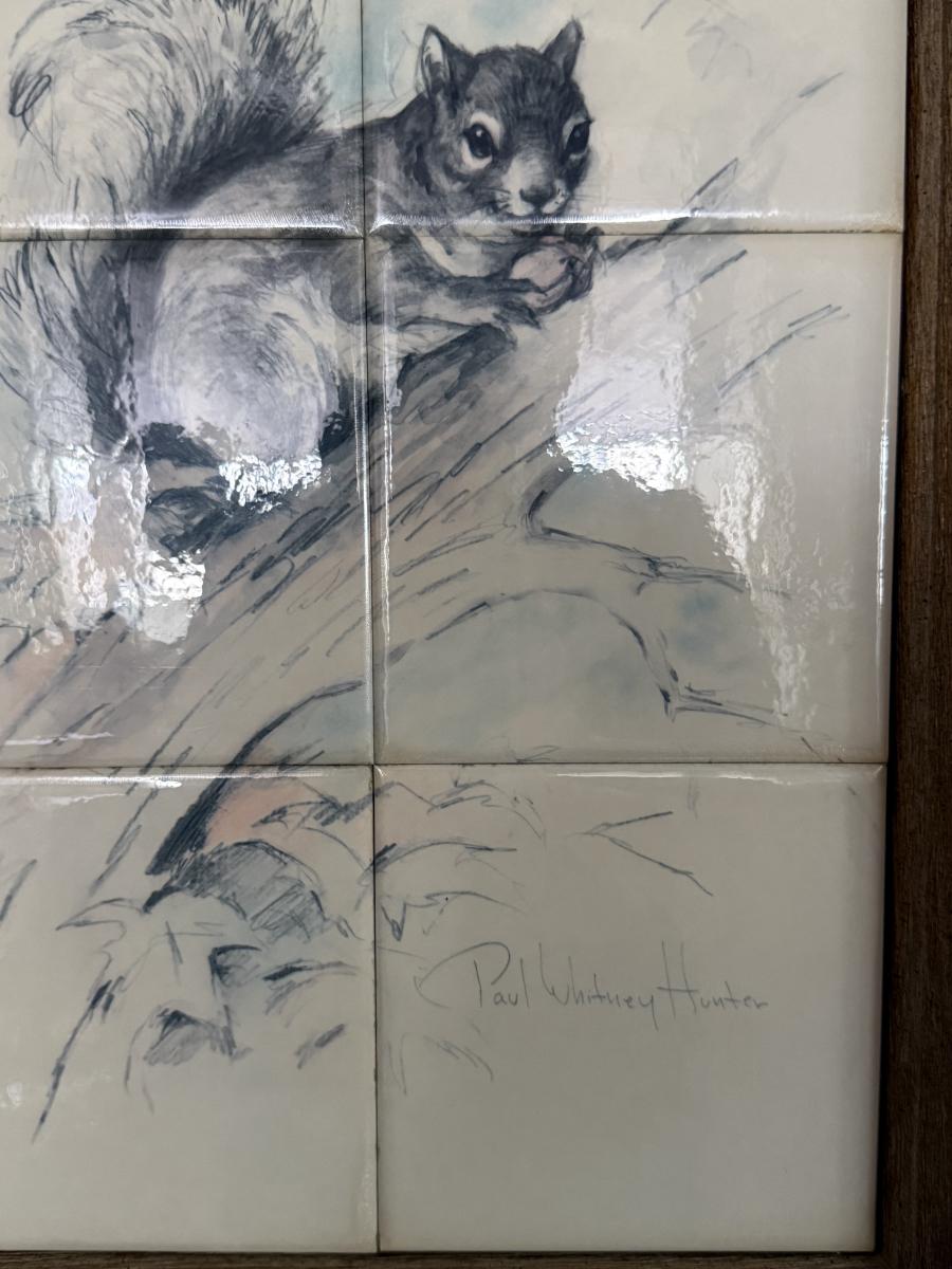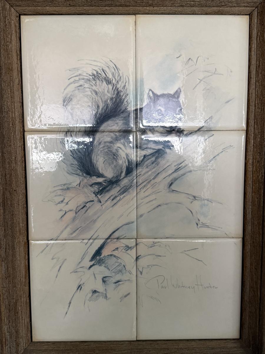 Ceramic Tile Squirrel Drawing- Signed Paul Whitney Hunter 11" x 15.5"