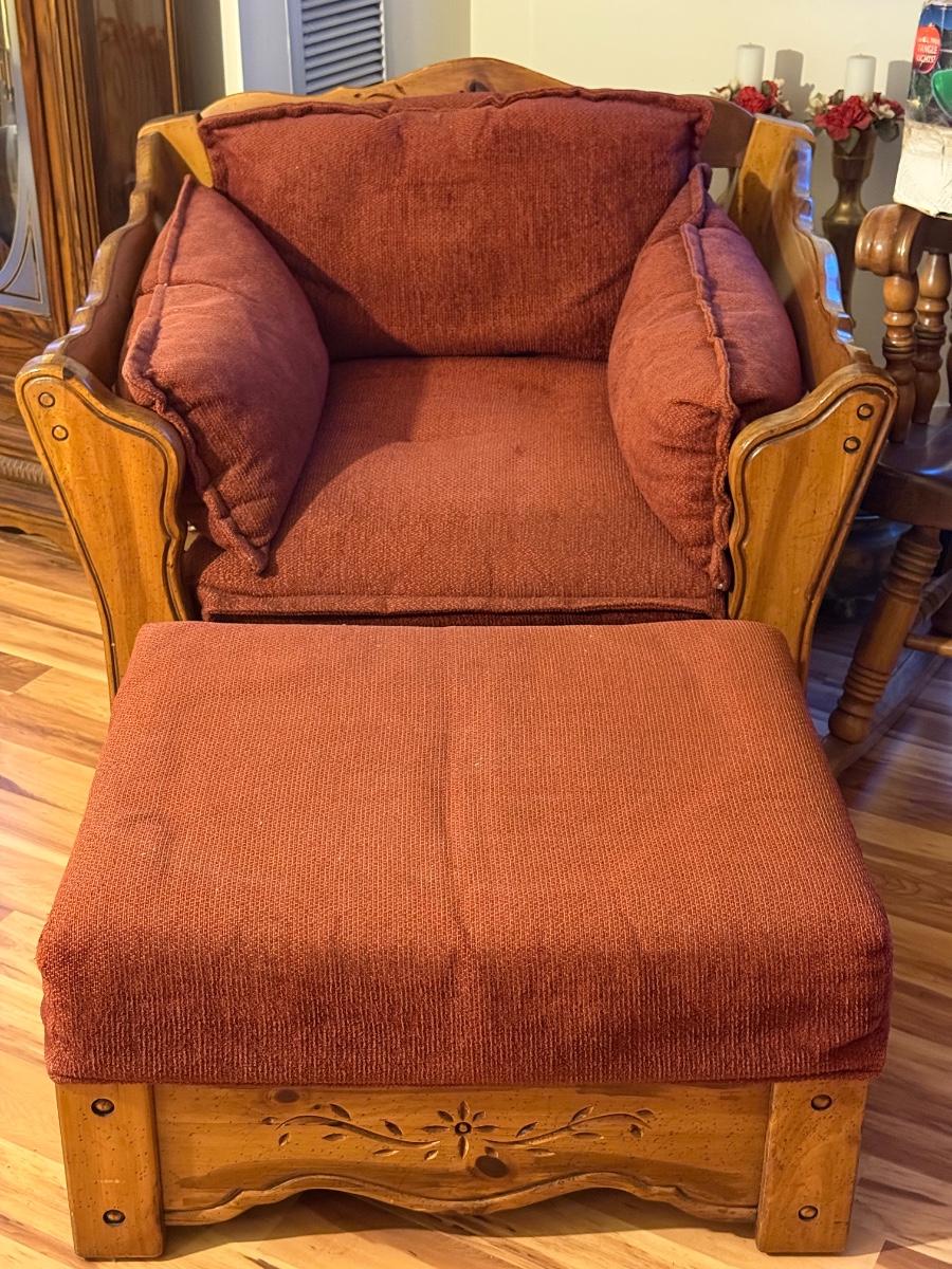Solid Oak Framed Chair w/ Ottoman