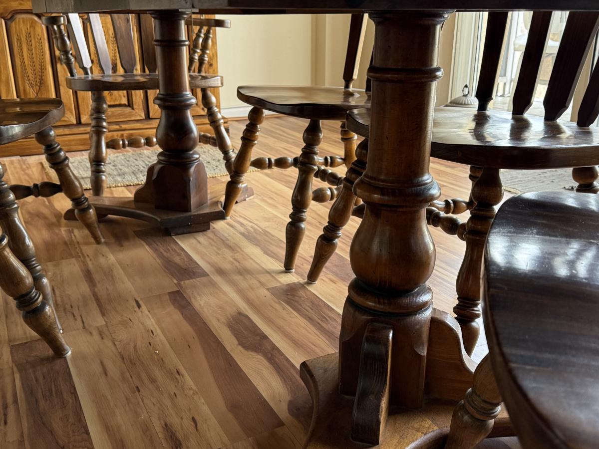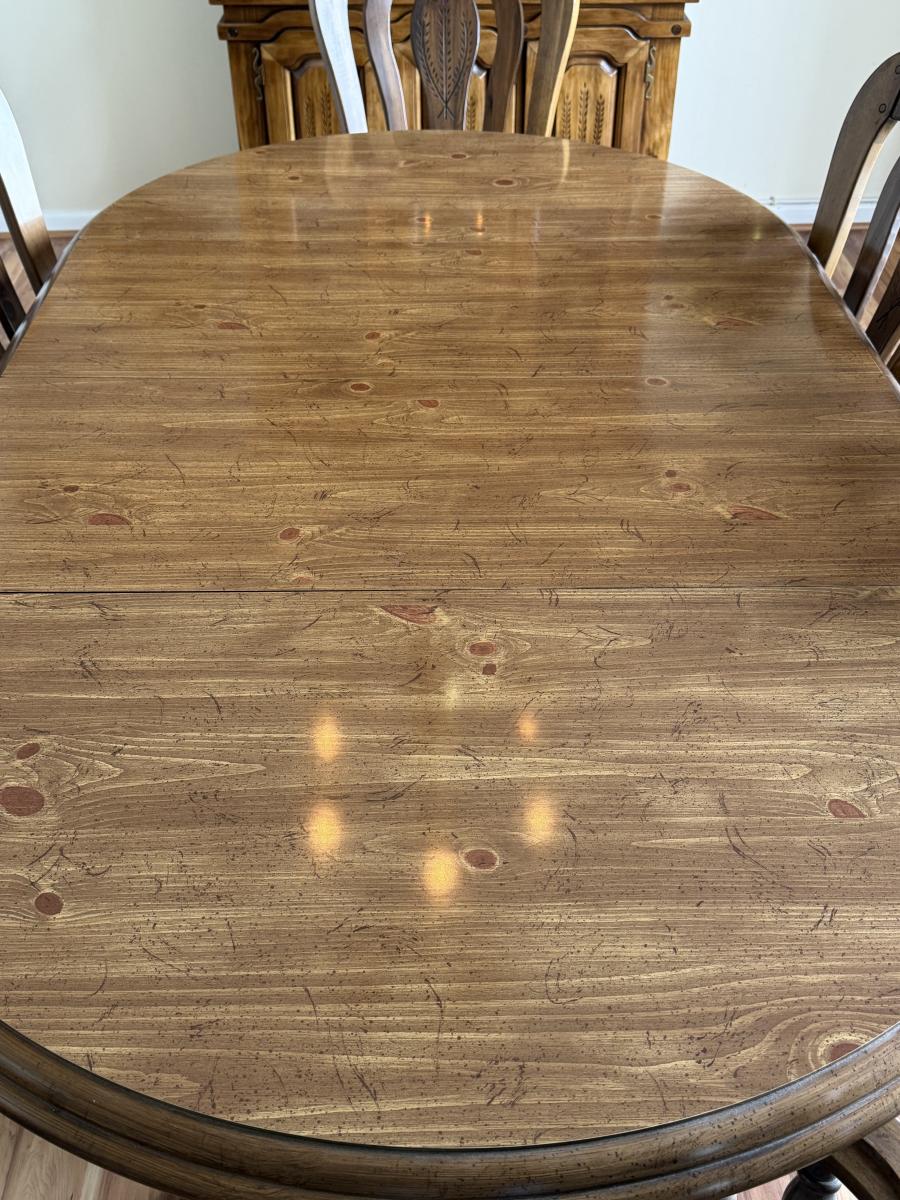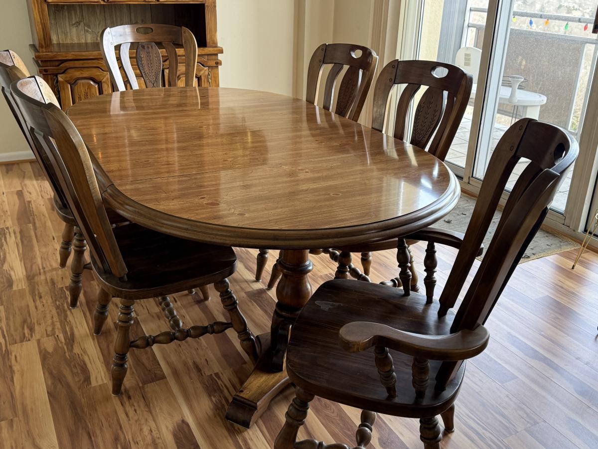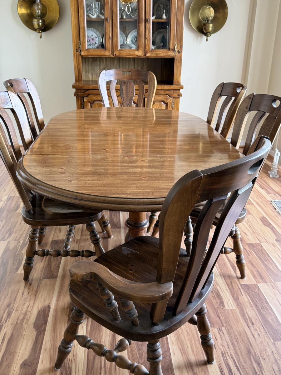 Solid Wood Dining Set w/ 2 leaves, 2 arm chairs, and 4 armless chairs