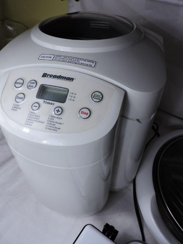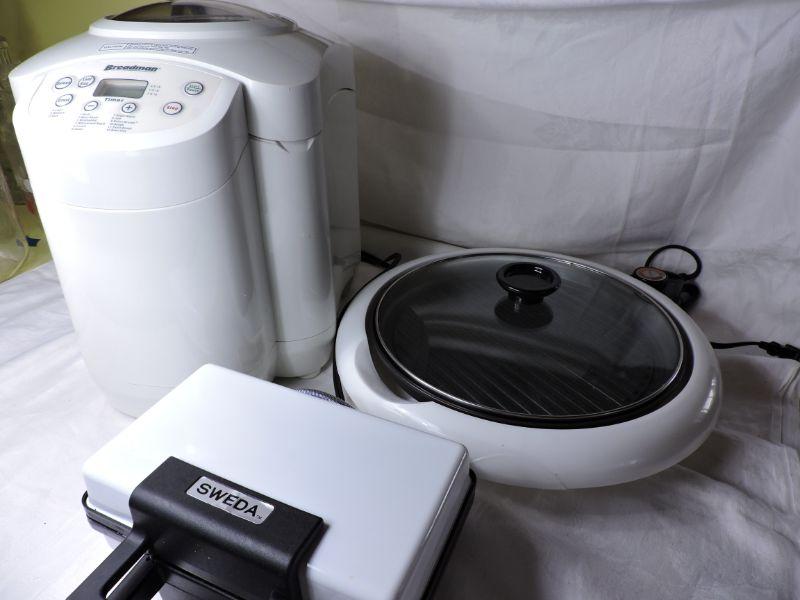 Breadman bread maker, Sweda sandwich maker, and an electric grill, all untested. Please review all photos and read Terms and Conditions before placing a bid. Pick up is Wednesday, November 20 from 4-7pm and Saturday, November 23 from 9am-2pm in Mantua, New Jersey. All sales are final. All sales are as is, where is. Please bring all boxes, tools, and muscle needed to remove your items. Any photo props are not included. All measurements are approximate. Items come from dog-friendly home.