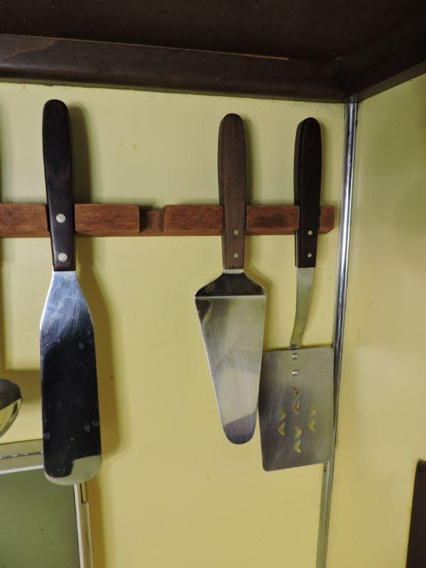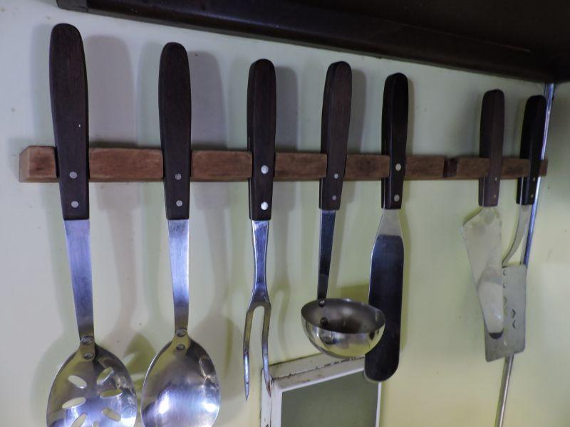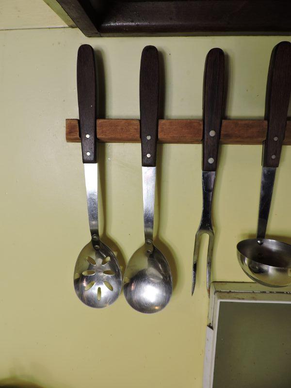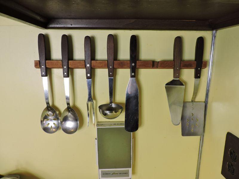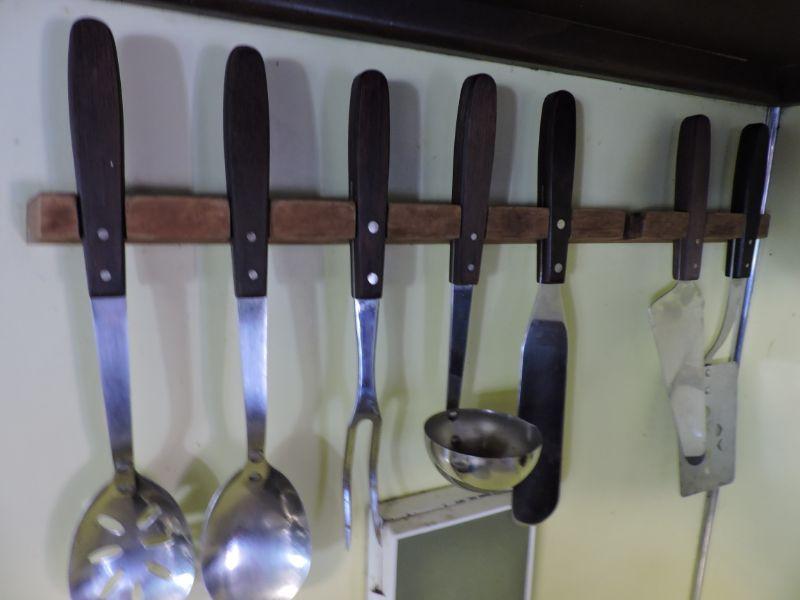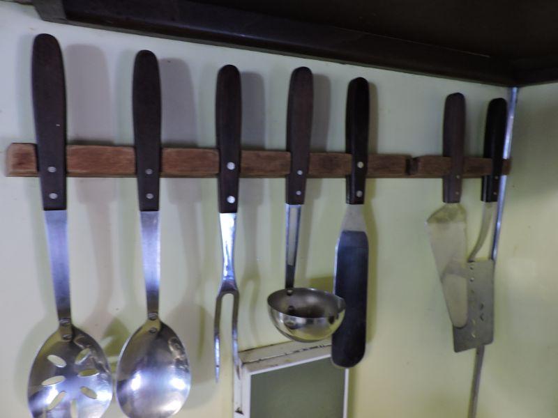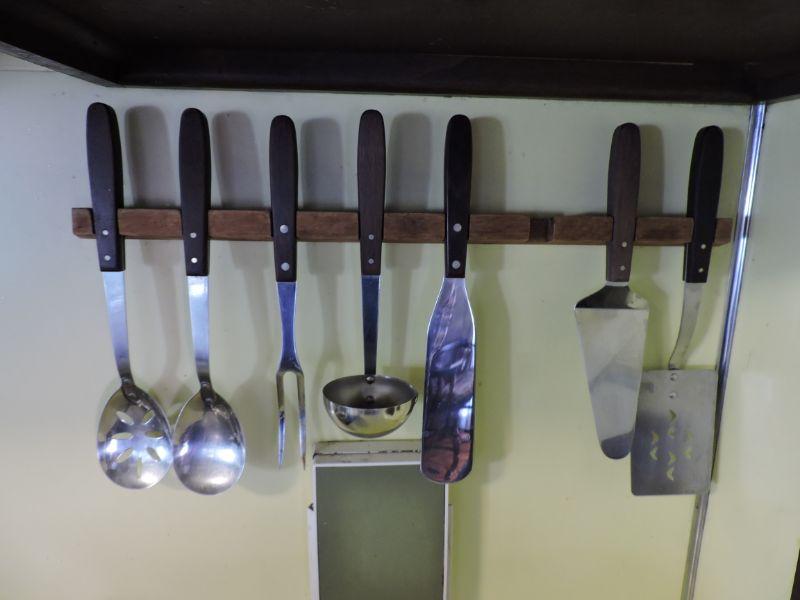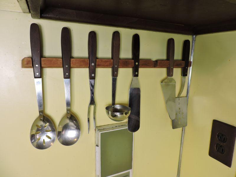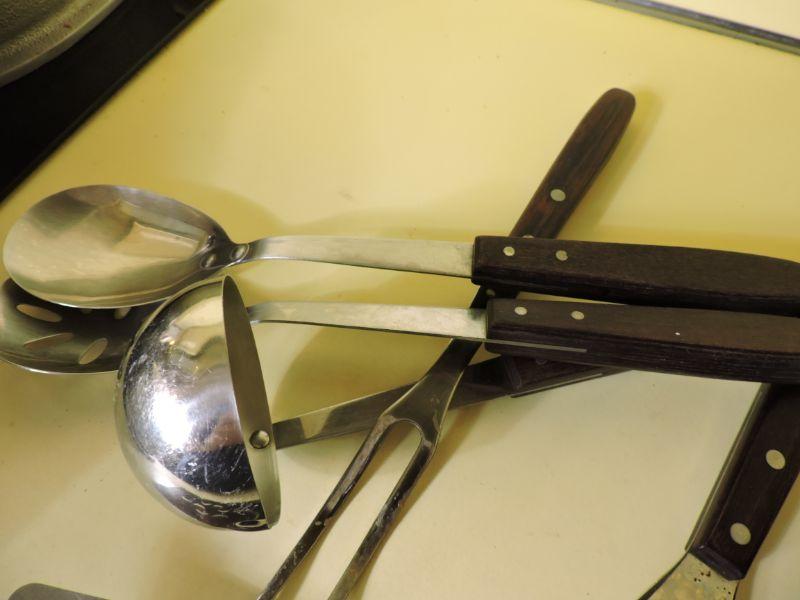Slotted spoons, ladle, spatula, and more on a custom holder. Please review all photos and read Terms and Conditions before placing a bid. Pick up is Wednesday, November 20 from 4-7pm and Saturday, November 23 from 9am-2pm in Mantua, New Jersey. All sales are final. All sales are as is, where is. Please bring all boxes, tools, and muscle needed to remove your items. Any photo props are not included. All measurements are approximate. Items come from dog-friendly home.