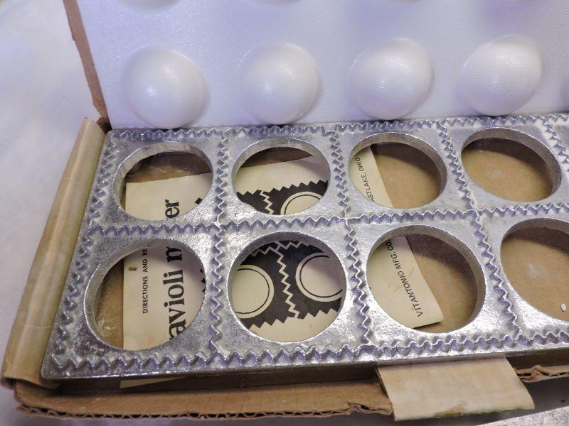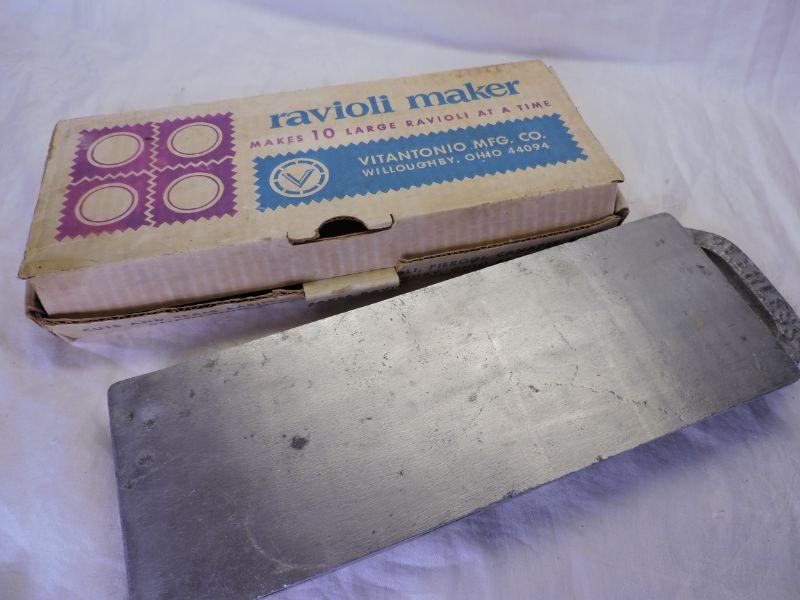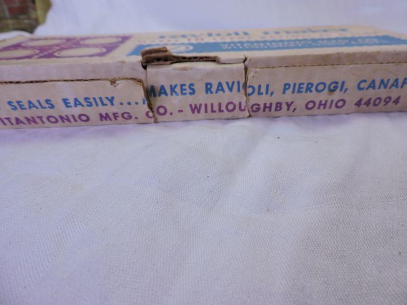 Vintage metal ravioli maker in original box. Please review all photos and read Terms and Conditions before placing a bid. Pick up is Wednesday, November 20 from 4-7pm and Saturday, November 23 from 9am-2pm in Mantua, New Jersey. All sales are final. All sales are as is, where is. Please bring all boxes, tools, and muscle needed to remove your items. Any photo props are not included. All measurements are approximate. Items come from dog-friendly home.