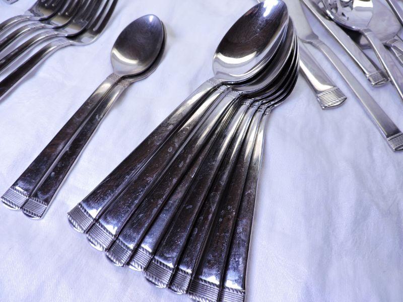 Incomplete set. Shortage of forks and t spoons of this nice pattern. Please review all photos and read Terms and Conditions before placing a bid. Pick up is Wednesday, November 20 from 4-7pm and Saturday, November 23 from 9am-2pm in Mantua, New Jersey. All sales are final. All sales are as is, where is. Please bring all boxes, tools, and muscle needed to remove your items. Any photo props are not included. All measurements are approximate. Items come from dog-friendly home.