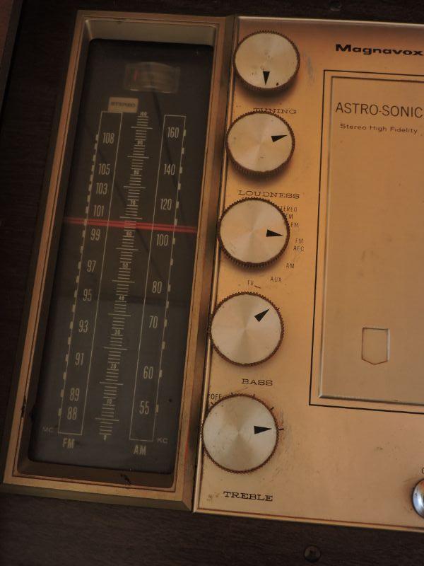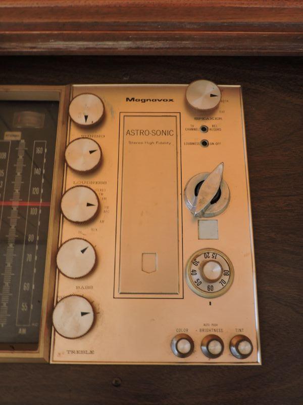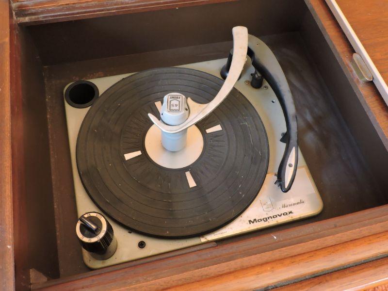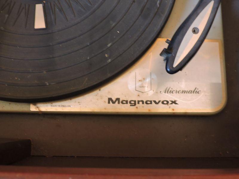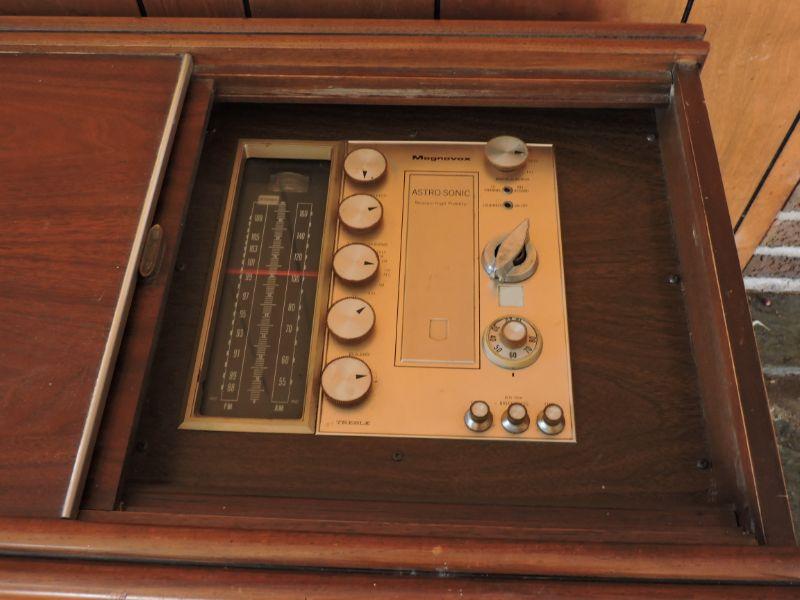 Magnavox record player and stereo with room to store your albums. Untested. Please review all photos and read Terms and Conditions before placing a bid. Pick up is Wednesday, November 20 from 4-7pm and Saturday, November 23 from 9am-2pm in Mantua, New Jersey. All sales are final. All sales are as is, where is. Please bring all boxes, tools, and muscle needed to remove your items. Any photo props are not included. All measurements are approximate. Items come from dog-friendly home.