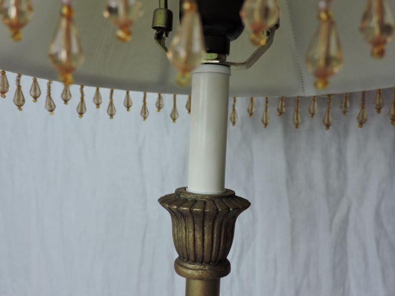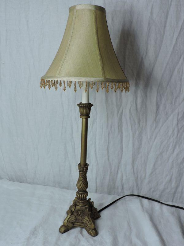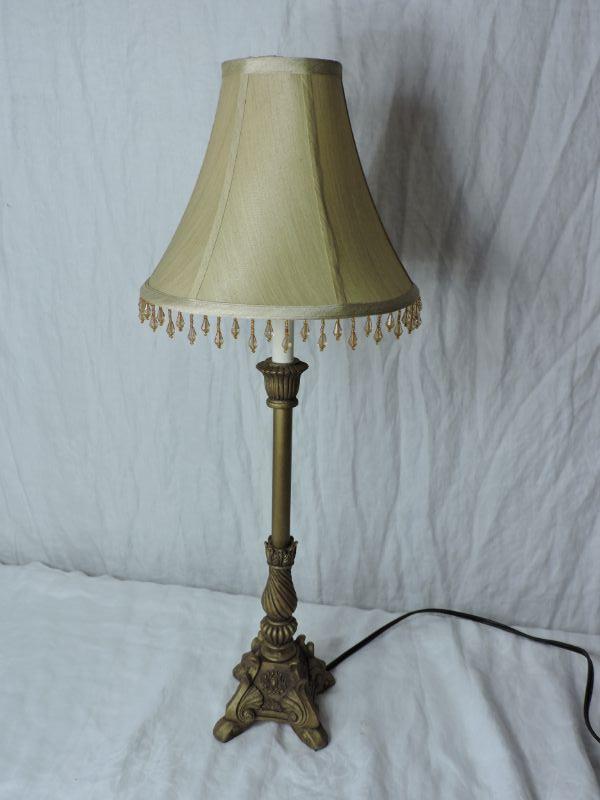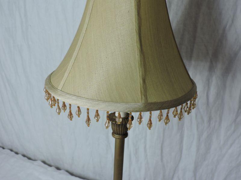 Brass colored lamp with beaded shade. Untested. Please review all photos and read Terms and Conditions before placing a bid. Pick up is Wednesday, November 20 from 4-7pm and Saturday, November 23 from 9am-2pm in Mantua, New Jersey. All sales are final. All sales are as is, where is. Please bring all boxes, tools, and muscle needed to remove your items. Any photo props are not included. All measurements are approximate. Items come from dog-friendly home.