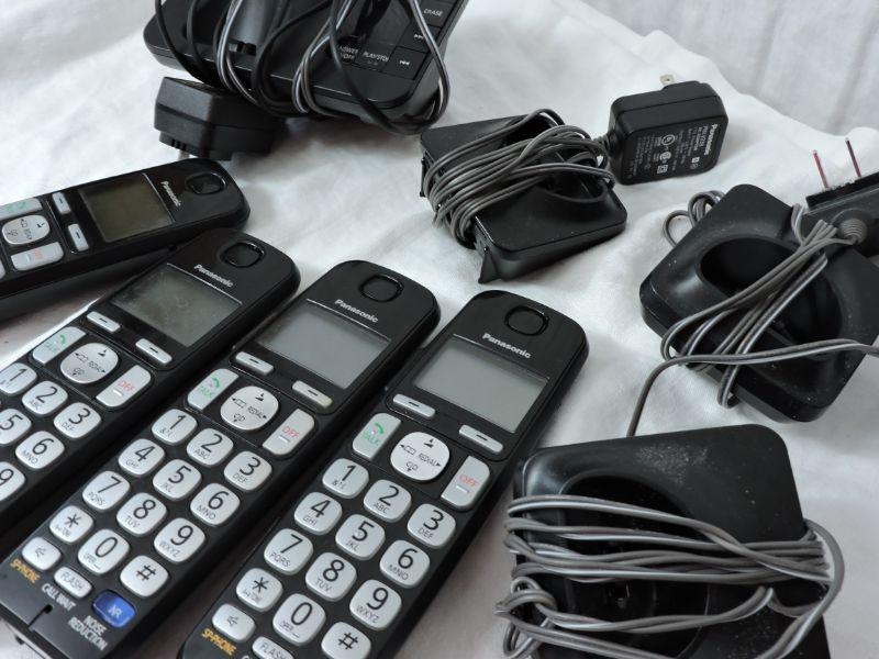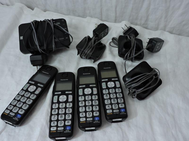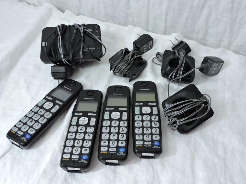 Panasonic landline phone system. Includes home base, 3 chargers, and 4 phones. Untested. Please review all photos and read Terms and Conditions before placing a bid. Pick up is Wednesday, November 20 from 4-7pm and Saturday, November 23 from 9am-2pm in Mantua, New Jersey. All sales are final. All sales are as is, where is. Please bring all boxes, tools, and muscle needed to remove your items. Any photo props are not included. All measurements are approximate. Items come from dog-friendly home.