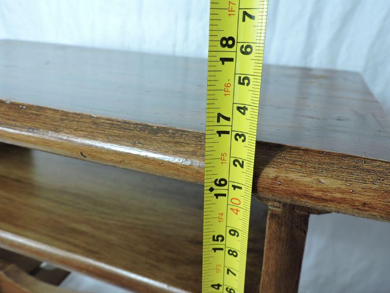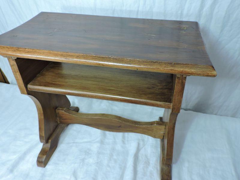 Vintage wooden side table with shelf. Please review all photos and read Terms and Conditions before placing a bid. Pick up is Wednesday, November 20 from 4-7pm and Saturday, November 23 from 9am-2pm in Mantua, New Jersey. All sales are final. All sales are as is, where is. Please bring all boxes, tools, and muscle needed to remove your items. Any photo props are not included. All measurements are approximate. Items come from dog-friendly home.