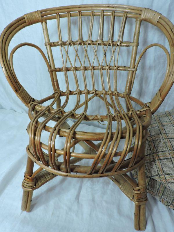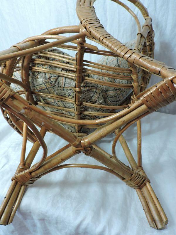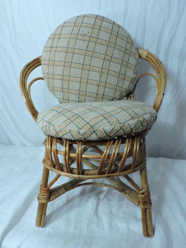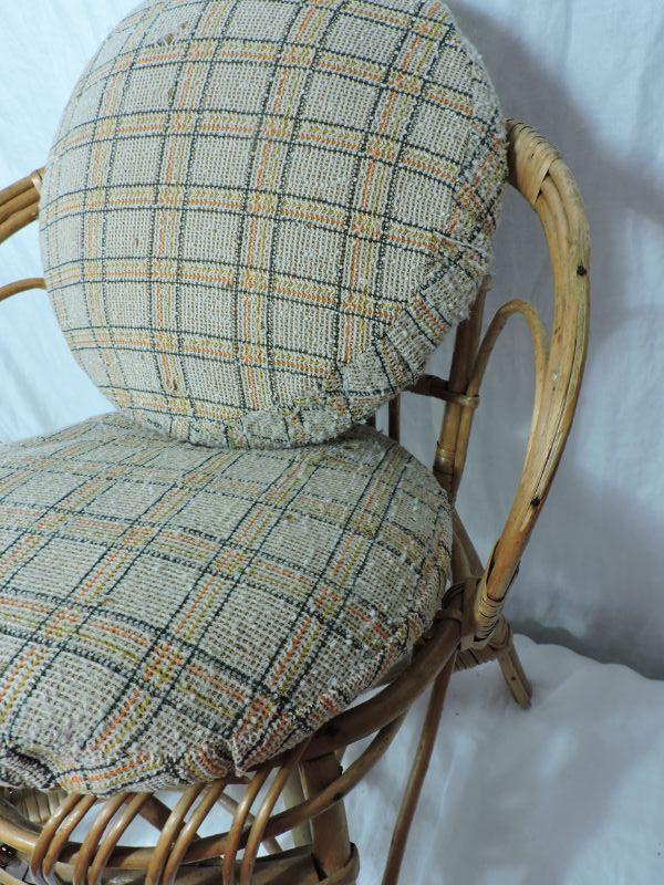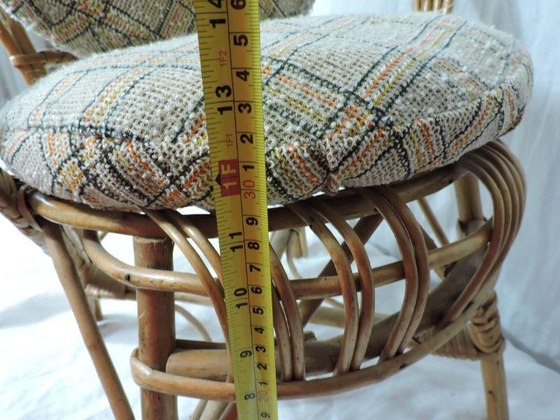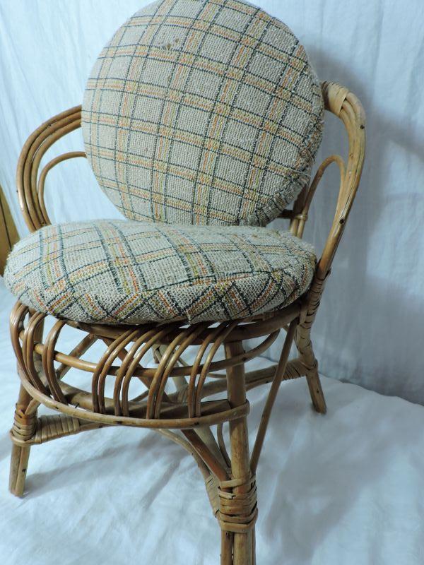 Vintage bamboo chair, missing one seat piece. Cushions are included. Please review all photos and read Terms and Conditions before placing a bid. Pick up is Wednesday, November 20 from 4-7pm and Saturday, November 23 from 9am-2pm in Mantua, New Jersey. All sales are final. All sales are as is, where is. Please bring all boxes, tools, and muscle needed to remove your items. Any photo props are not included. All measurements are approximate. Items come from dog-friendly home.