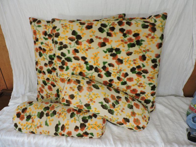 Two bolsters and two floor pillows with custom fabric. Please review all photos and read Terms and Conditions before placing a bid. Pick up is Wednesday, November 20 from 4-7pm and Saturday, November 23 from 9am-2pm in Mantua, New Jersey. All sales are final. All sales are as is, where is. Please bring all boxes, tools, and muscle needed to remove your items. Any photo props are not included. All measurements are approximate. Items come from dog-friendly home.