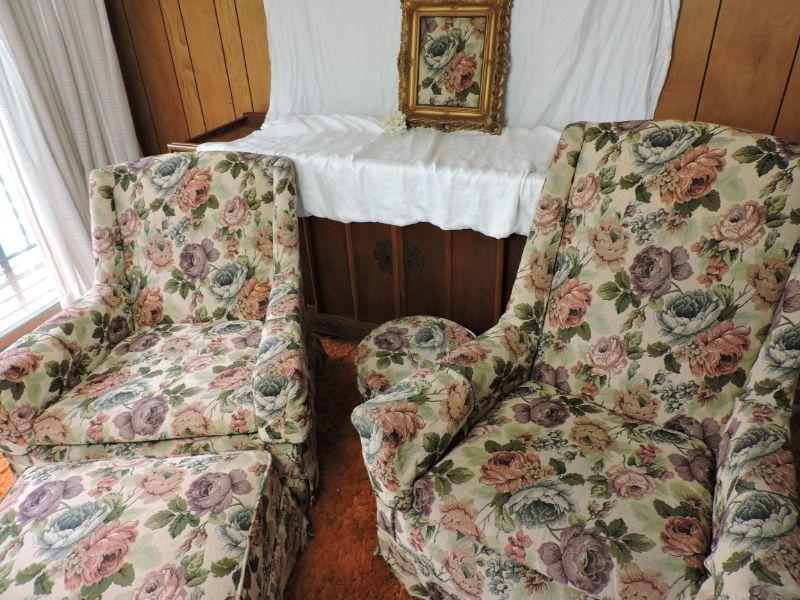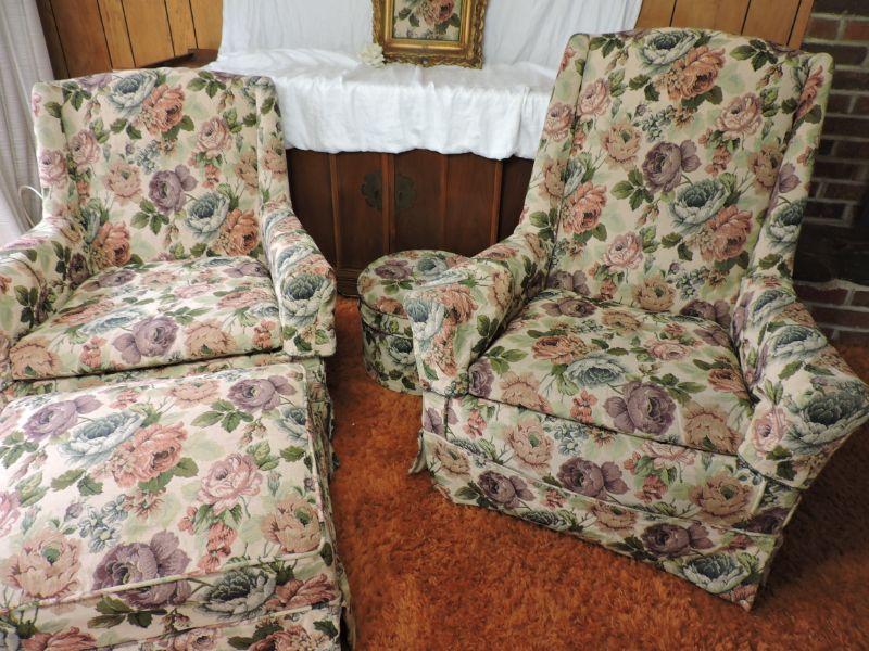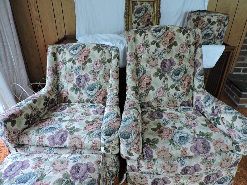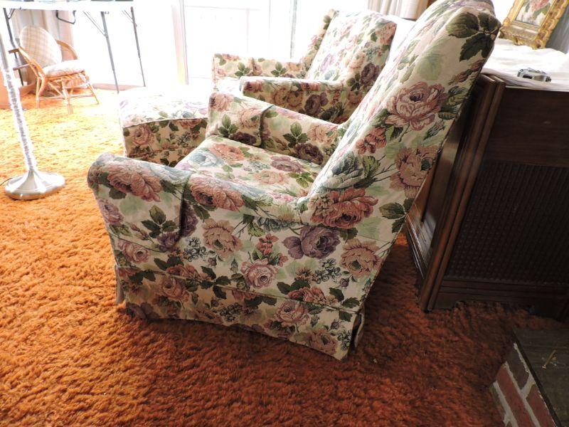 Two chairs and two ottomans, all custom slip covered. Please review all photos and read Terms and Conditions before placing a bid. Pick up is Wednesday, November 20 from 4-7pm and Saturday, November 23 from 9am-2pm in Mantua, New Jersey. All sales are final. All sales are as is, where is. Please bring all boxes, tools, and muscle needed to remove your items. Any photo props are not included. All measurements are approximate. Items come from dog-friendly home.