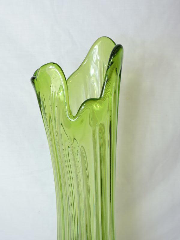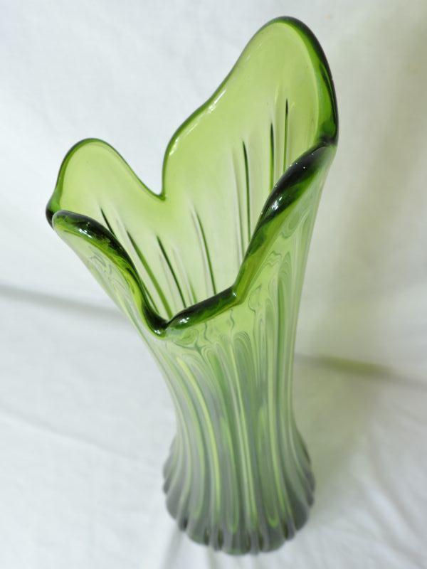 Green, glass vase. Please review all photos and read Terms and Conditions before placing a bid. Pick up is Wednesday, November 20 from 4-7pm and Saturday, November 23 from 9am-2pm in Mantua, New Jersey. All sales are final. All sales are as is, where is. Please bring all boxes, tools, and muscle needed to remove your items. Any photo props are not included. All measurements are approximate. Items come from dog-friendly home.