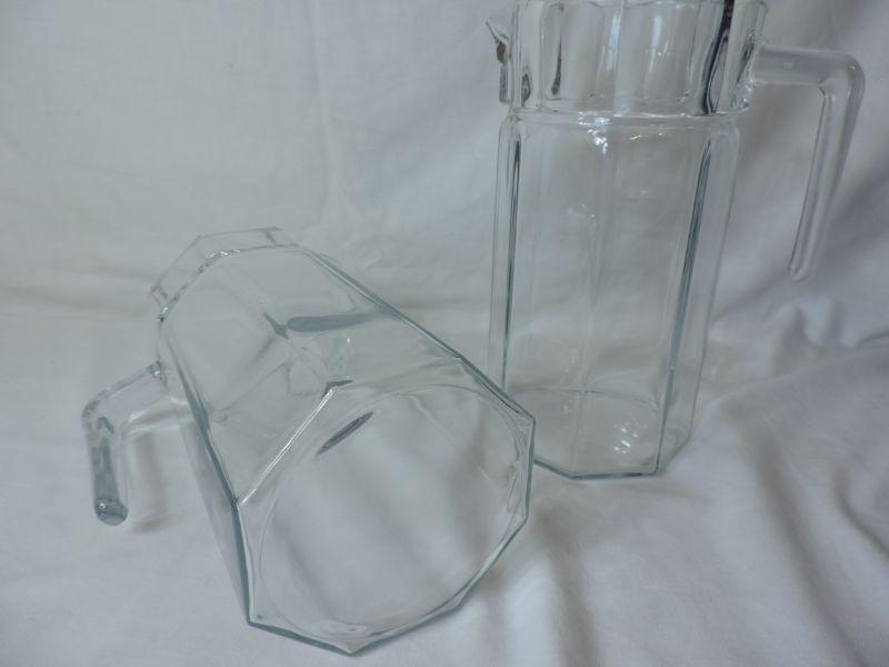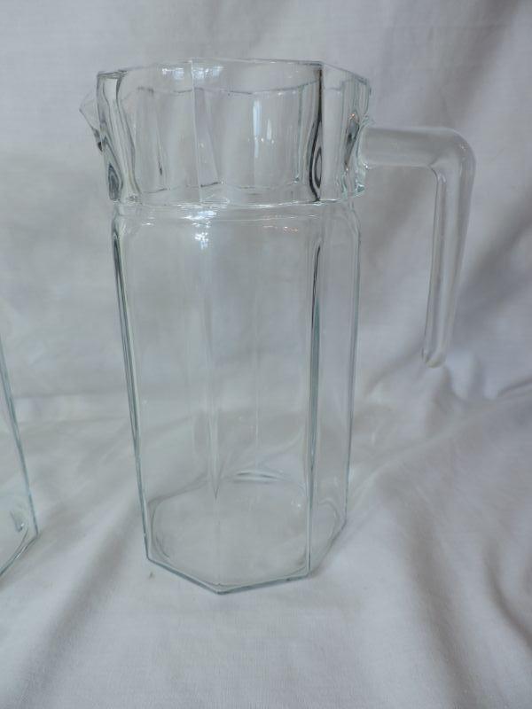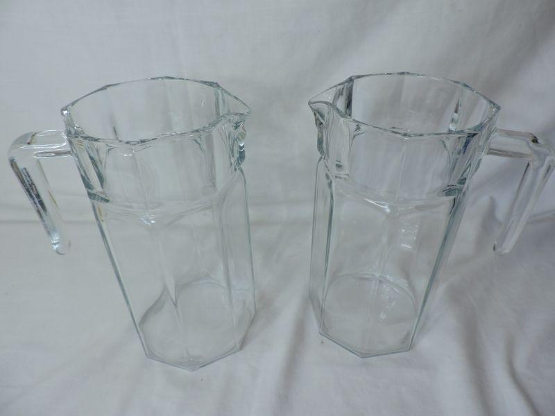 Two matching glass pitchers. Please review all photos and read Terms and Conditions before placing a bid. Pick up is Wednesday, November 20 from 4-7pm and Saturday, November 23 from 9am-2pm in Mantua, New Jersey. All sales are final. All sales are as is, where is. Please bring all boxes, tools, and muscle needed to remove your items. Any photo props are not included. All measurements are approximate. Items come from dog-friendly home.
