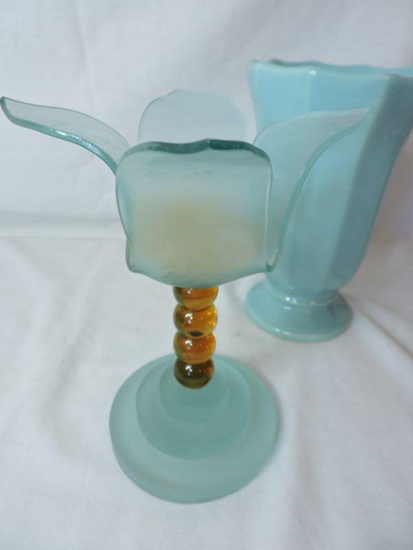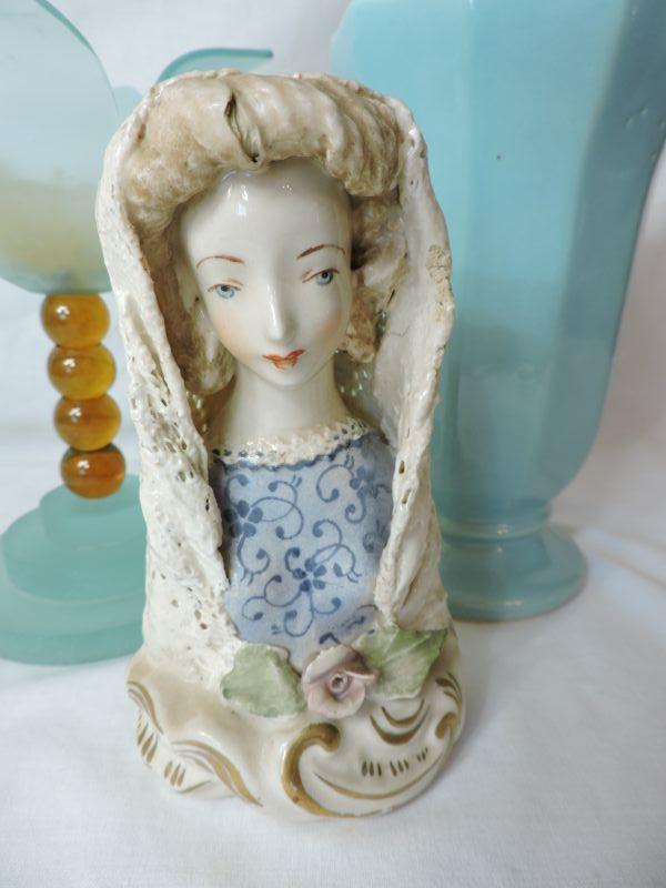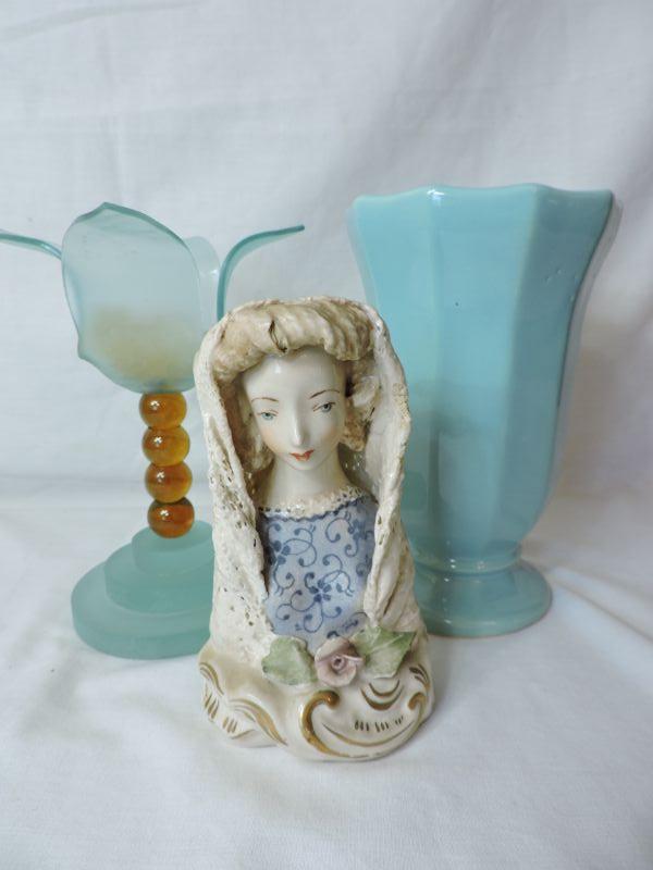 Lady in blue dress, a blue vase and a frosted blue candle holder. Please review all photos and read Terms and Conditions before placing a bid. Pick up is Wednesday, November 20 from 4-7pm and Saturday, November 23 from 9am-2pm in Mantua, New Jersey. All sales are final. All sales are as is, where is. Please bring all boxes, tools, and muscle needed to remove your items. Any photo props are not included. All measurements are approximate. Items come from dog-friendly home.