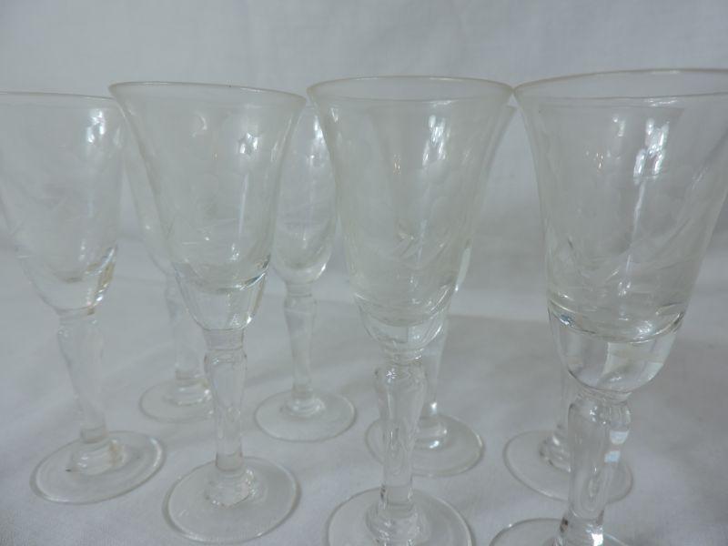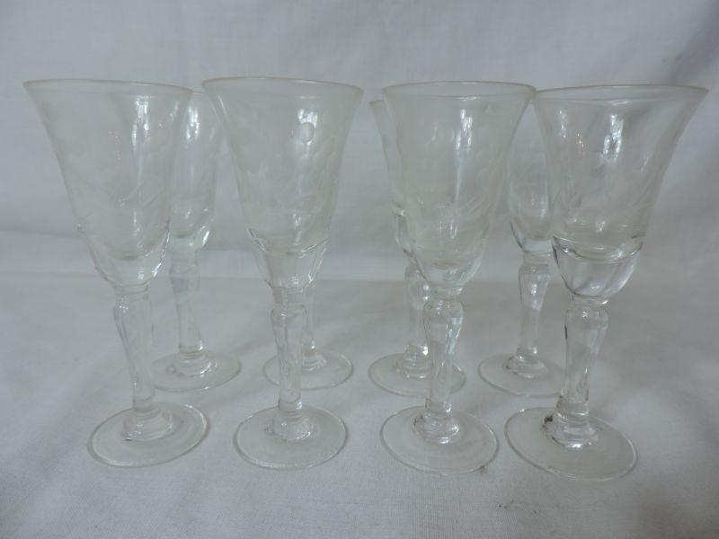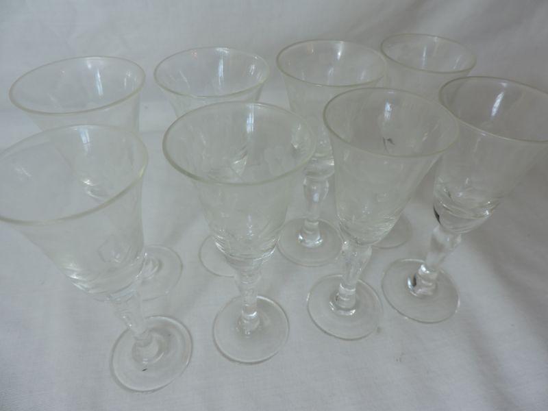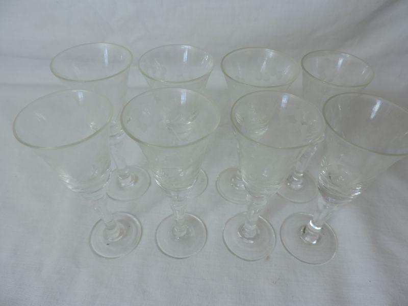 Eight crystal wine glasses. Please review all photos and read Terms and Conditions before placing a bid. Pick up is Wednesday, November 20 from 4-7pm and Saturday, November 23 from 9am-2pm in Mantua, New Jersey. All sales are final. All sales are as is, where is. Please bring all boxes, tools, and muscle needed to remove your items. Any photo props are not included. All measurements are approximate. Items come from dog-friendly home.