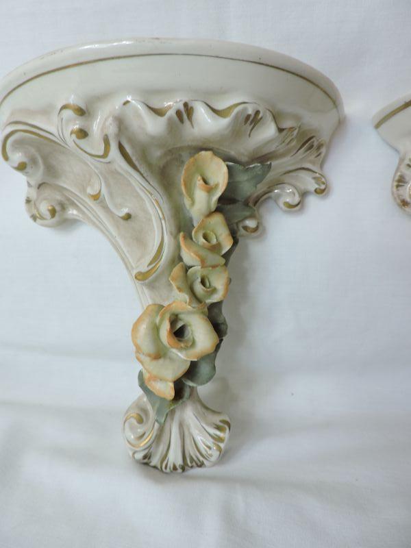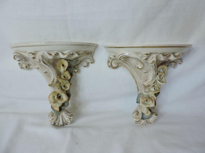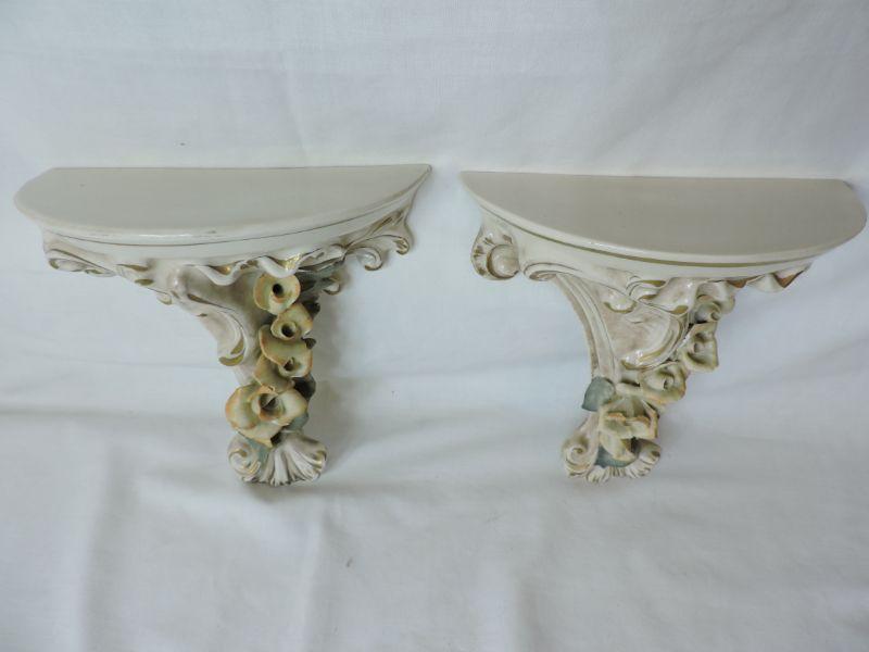 Two vintage, ceramic shelves. Please review all photos and read Terms and Conditions before placing a bid. Pick up is Wednesday, November 20 from 4-7pm and Saturday, November 23 from 9am-2pm in Mantua, New Jersey. All sales are final. All sales are as is, where is. Please bring all boxes, tools, and muscle needed to remove your items. Any photo props are not included. All measurements are approximate. Items come from dog-friendly home.