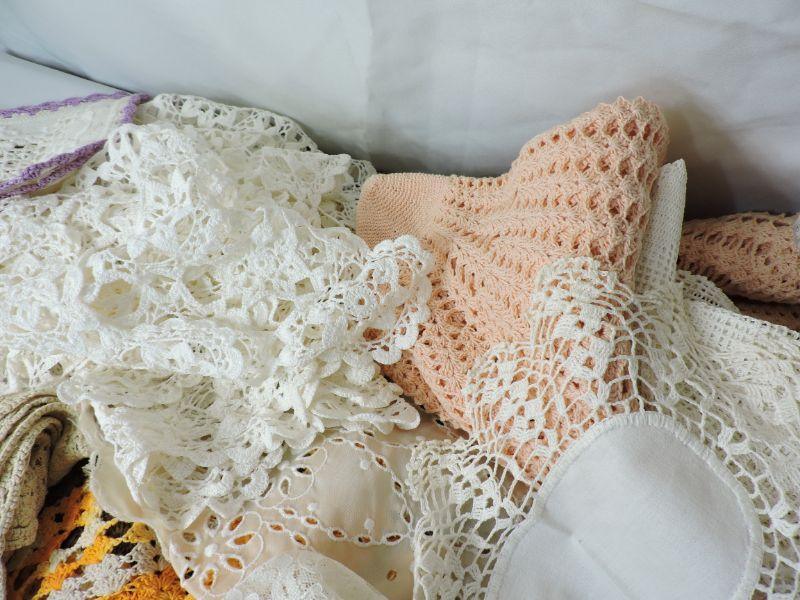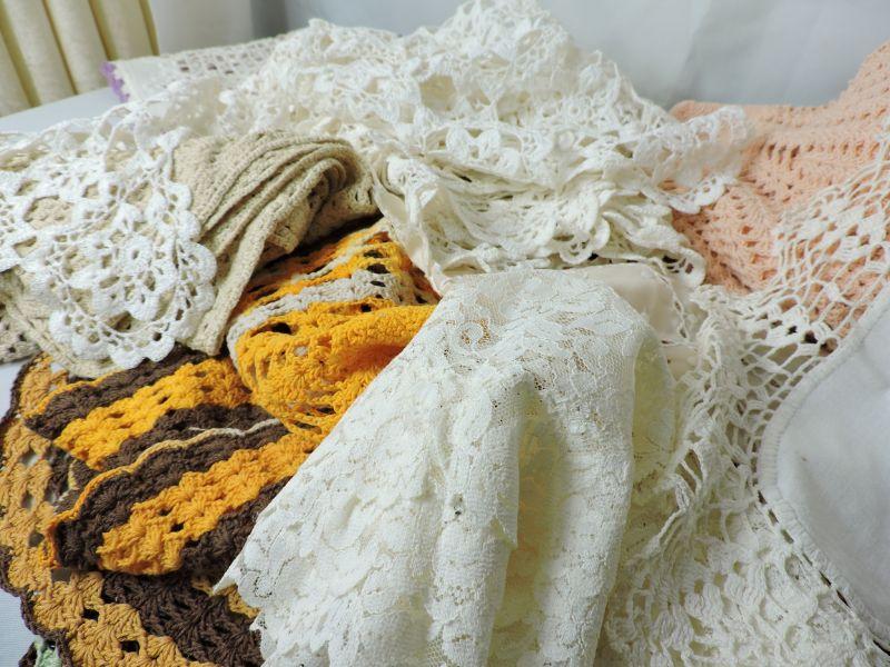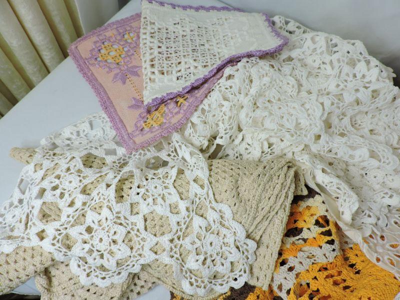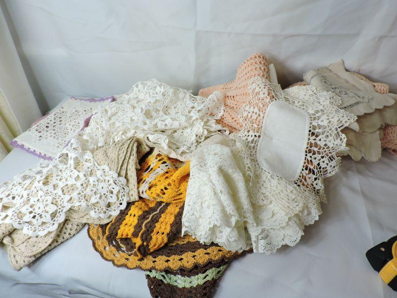 Lacy doilies and hand crafted, crochet table covers. Please review all photos and read Terms and Conditions before placing a bid. Pick up is Wednesday, November 20 from 4-7pm and Saturday, November 23 from 9am-2pm in Mantua, New Jersey. All sales are final. All sales are as is, where is. Please bring all boxes, tools, and muscle needed to remove your items. Any photo props are not included. All measurements are approximate. Items come from dog-friendly home.