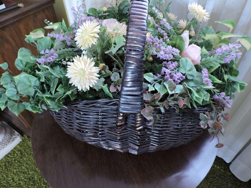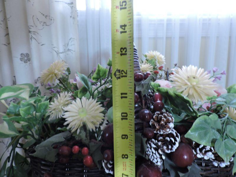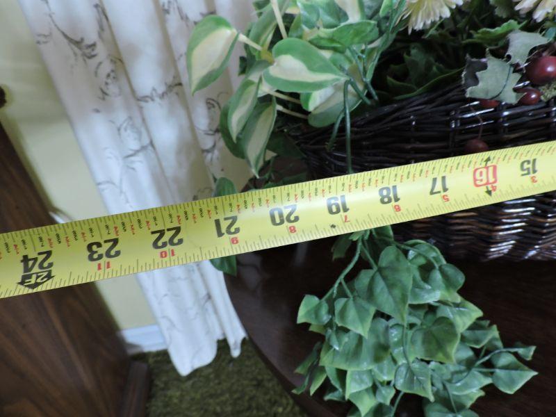 Greens and flowers make a pretty arrangement in wicker basket. Please review all photos and read Terms and Conditions before placing a bid. Pick up is Wednesday, November 20 from 4-7pm and Saturday, November 23 from 9am-2pm in Mantua, New Jersey. All sales are final. All sales are as is, where is. Please bring all boxes, tools, and muscle needed to remove your items. Any photo props are not included. All measurements are approximate. Items come from dog-friendly home.