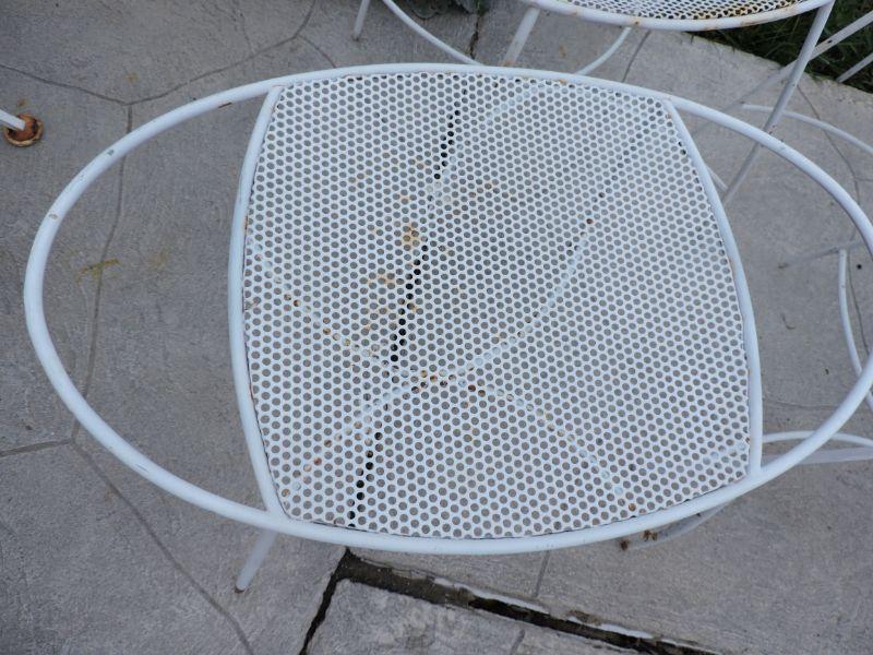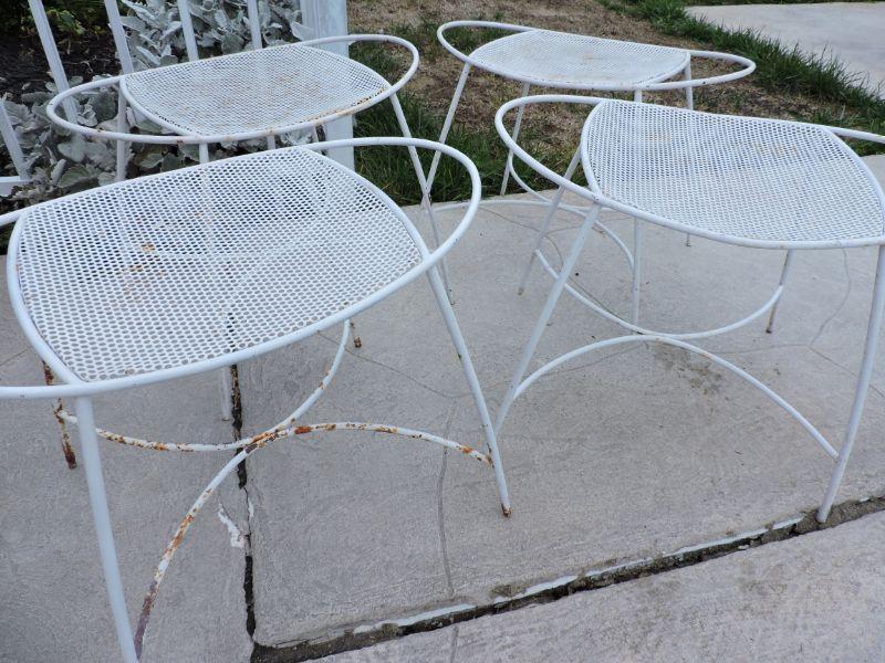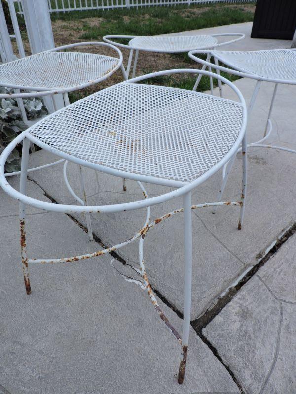 Four vintage, metal tables. Some rust. Please review all photos and read Terms and Conditions before placing a bid. Pick up is Wednesday, November 20 from 4-7pm and Saturday, November 23 from 9am-2pm in Mantua, New Jersey. All sales are final. All sales are as is, where is. Please bring all boxes, tools, and muscle needed to remove your items. Any photo props are not included. All measurements are approximate. Items come from dog-friendly home.