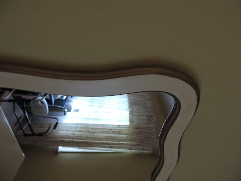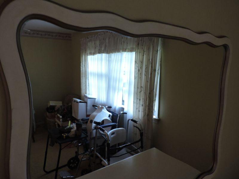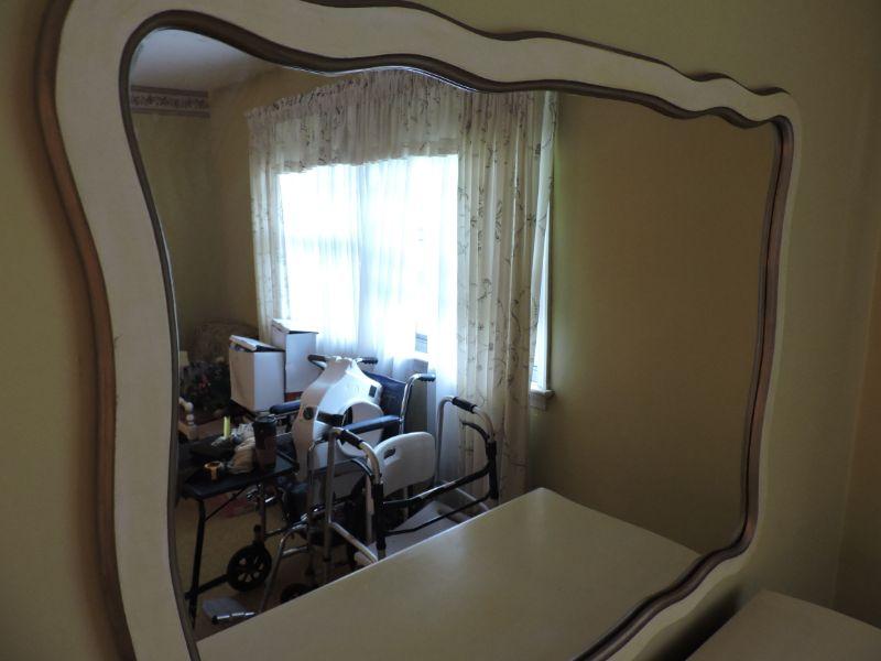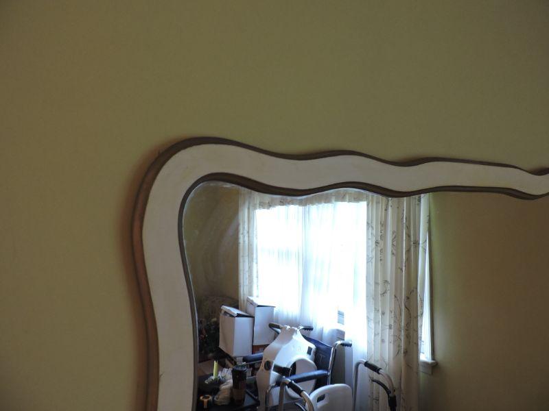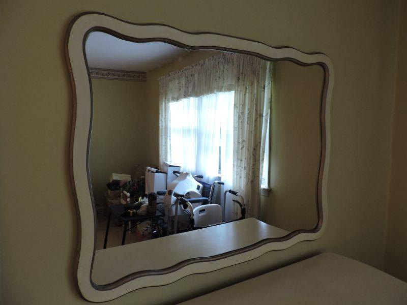 Wooden framed mirror, painted white. Please review all photos and read Terms and Conditions before placing a bid. Pick up is Wednesday, November 20 from 4-7pm and Saturday, November 23 from 9am-2pm in Mantua, New Jersey. All sales are final. All sales are as is, where is. Please bring all boxes, tools, and muscle needed to remove your items. Any photo props are not included. All measurements are approximate. Items come from dog-friendly home.